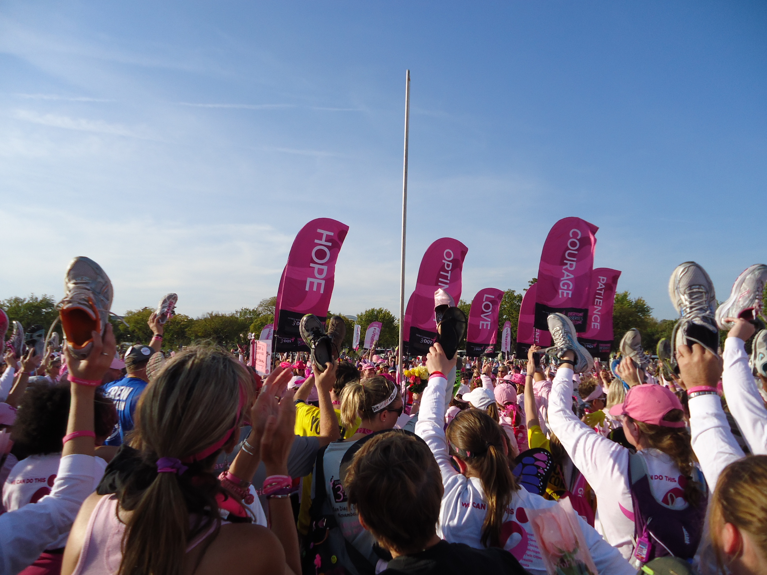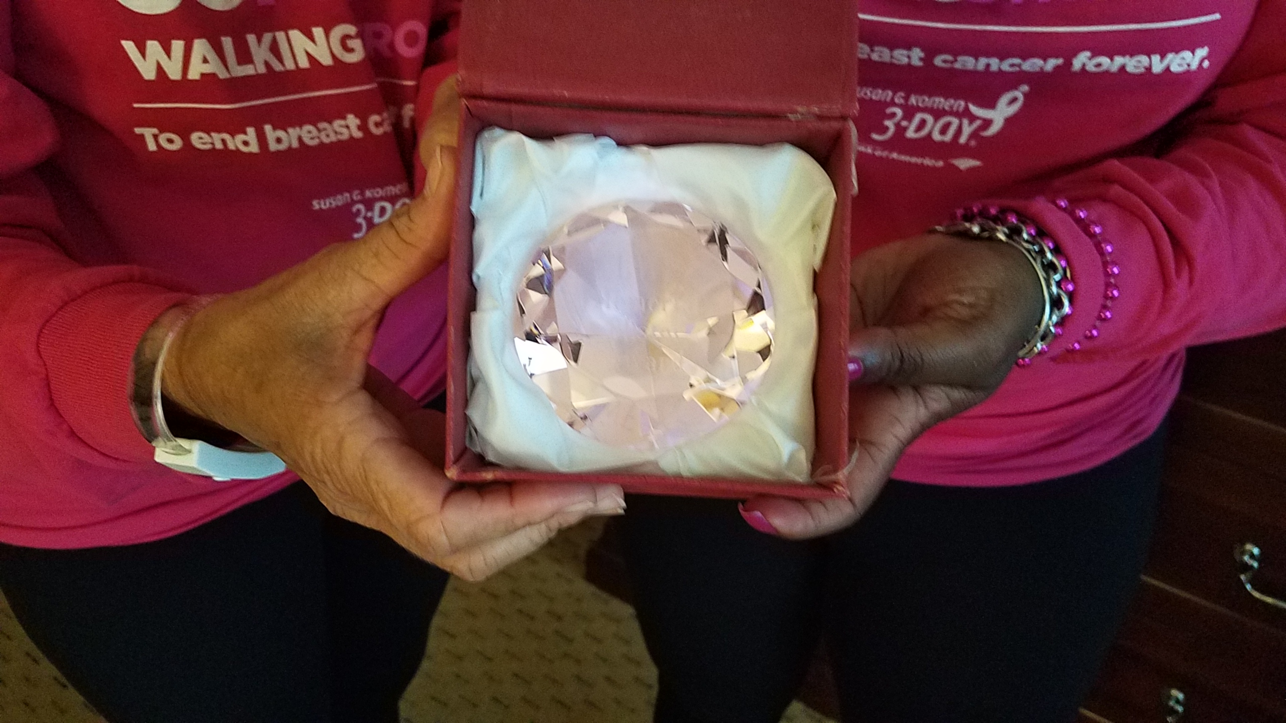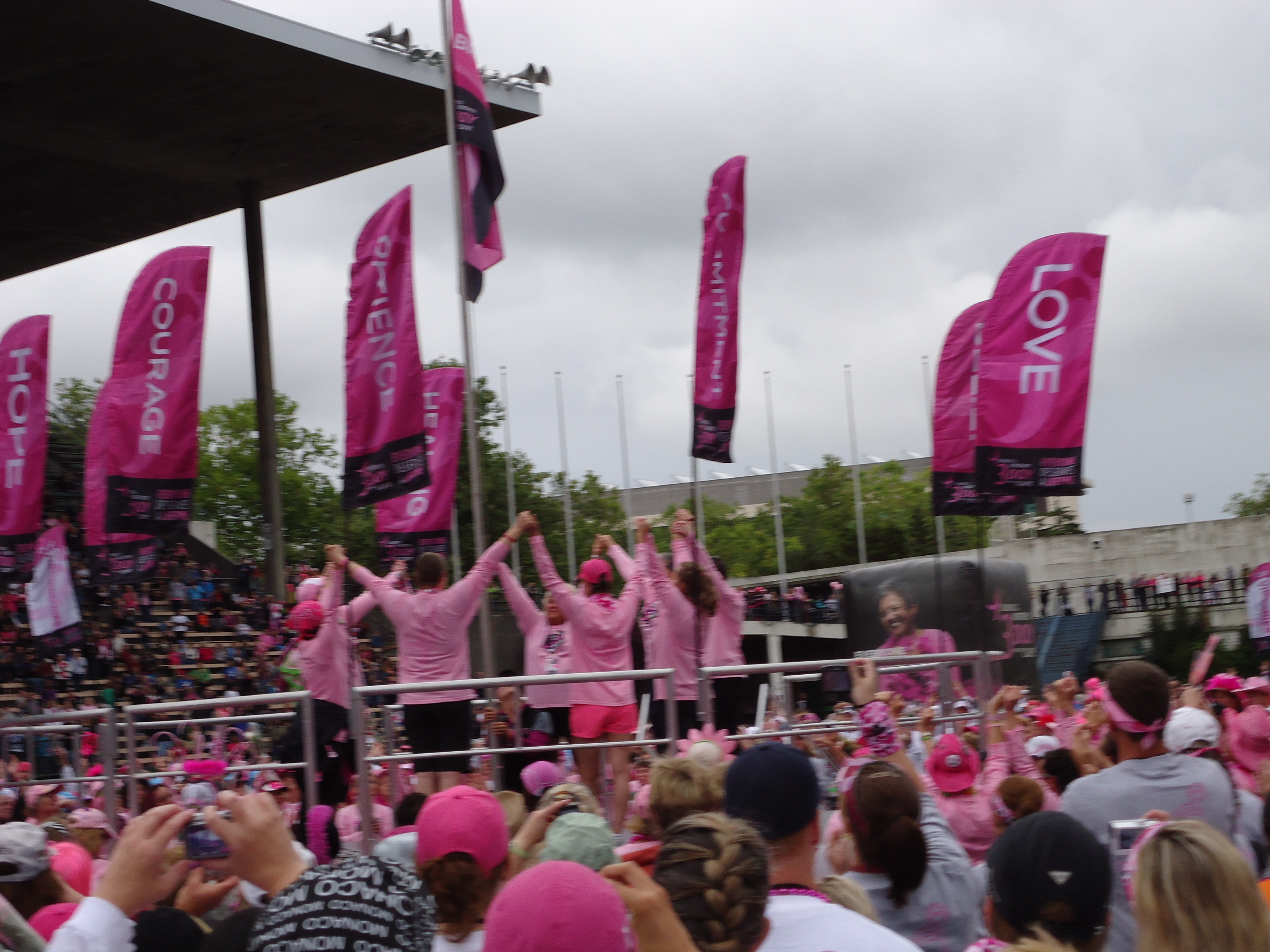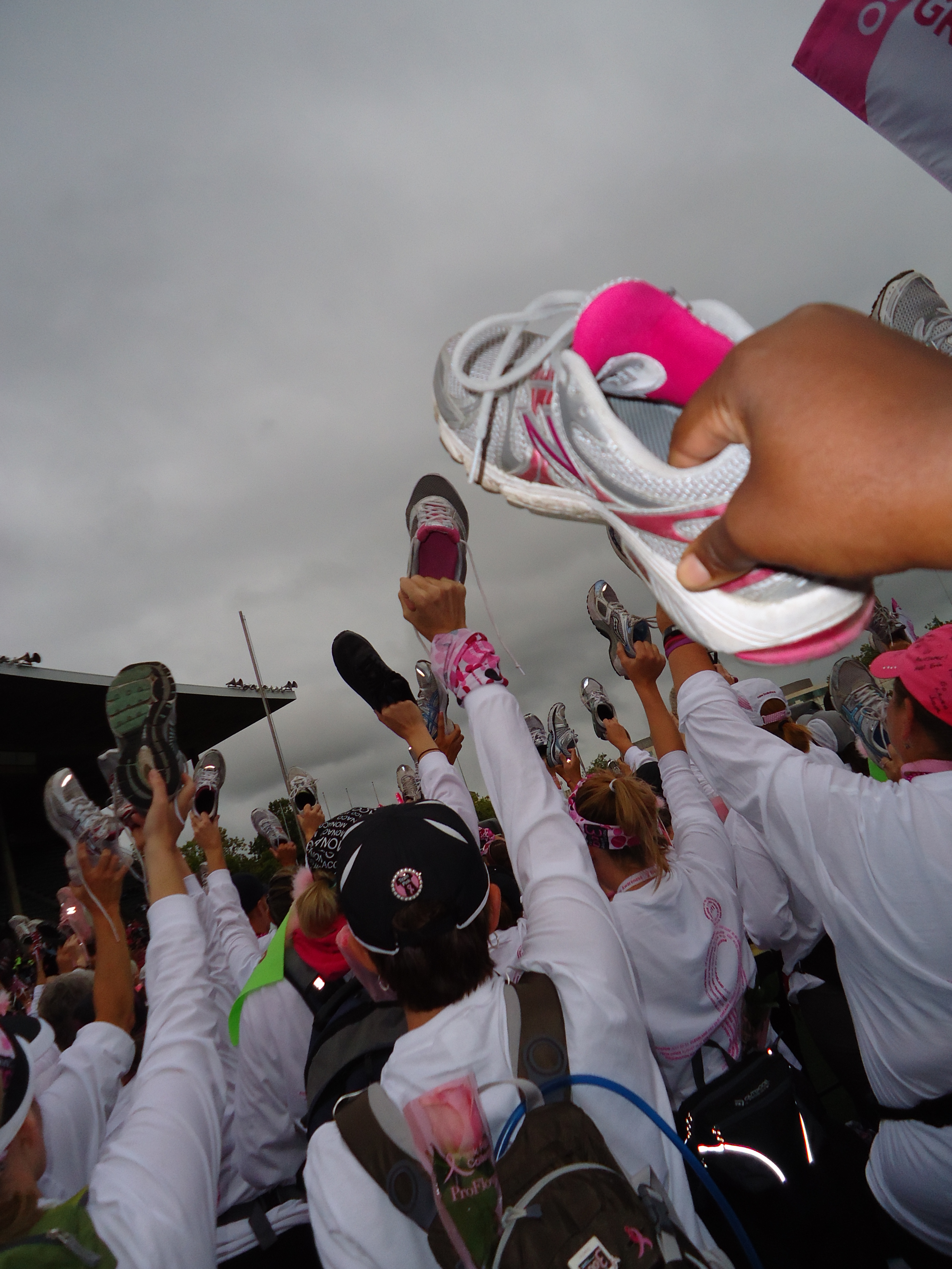 And then comes day number 3! The last day! Between the first step and the closing ceremony are 14-17 miles, depending on the city where the walk is happening. But along the route, there are also – strangers cheering us on, chats with new friends, a leisurely lunch at a good restaurant, maybe a margarita or mojito, great conversations with my team, making plans for dinner that night, perhaps sightseeing the following day, and more. So quite quickly the last of the 60 miles is done and it’s time for the closing ceremony. I’ve survived. I’ve been thanked by many people along the way for walking. I’ve overcome my mental challenges and was either lucky to finish the walk with no blisters, or determined enough to finish with the ones I’d gotten – in 2016 I won my team’s pink diamond for the most blisters and I accepted it with pride.