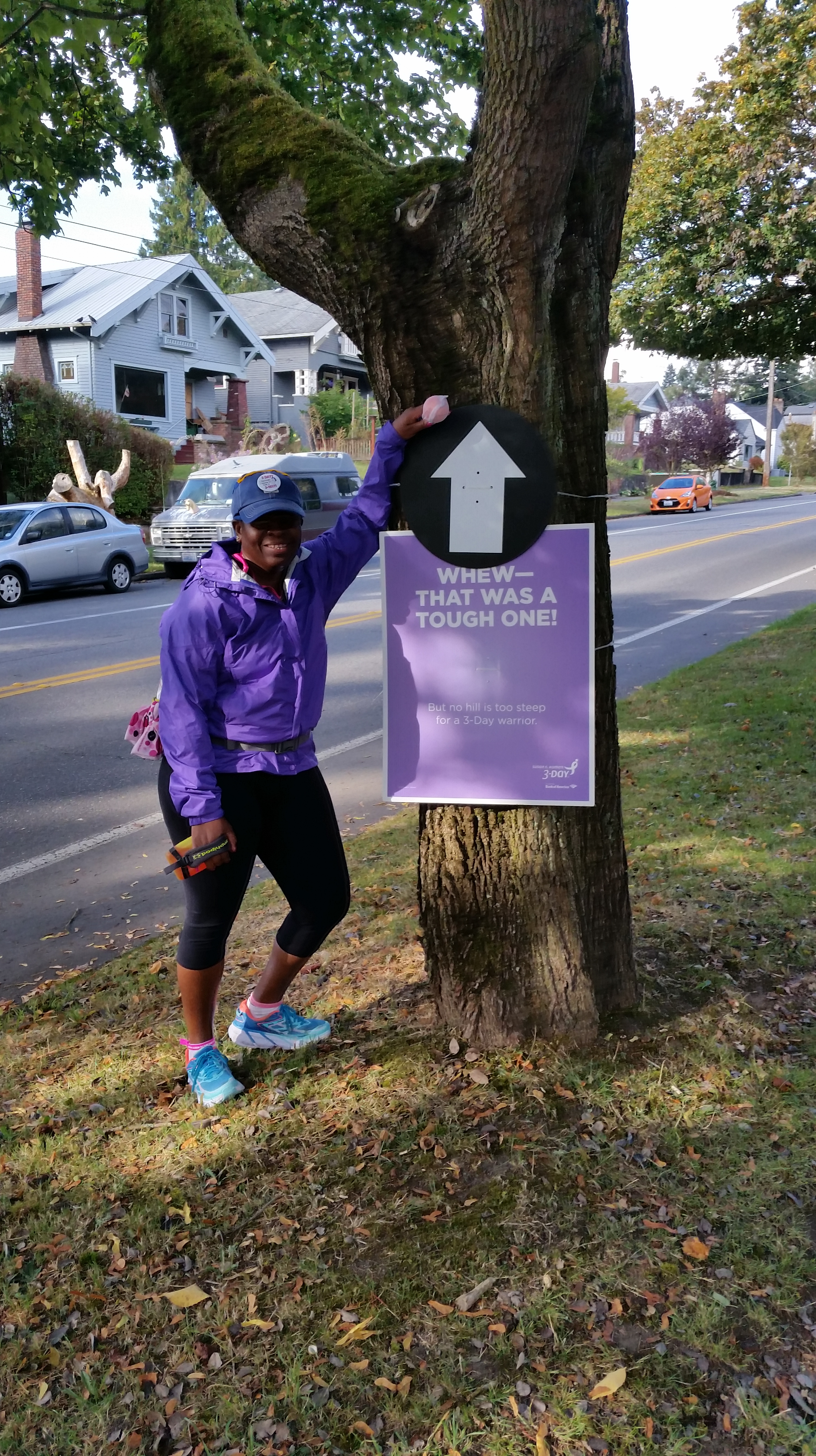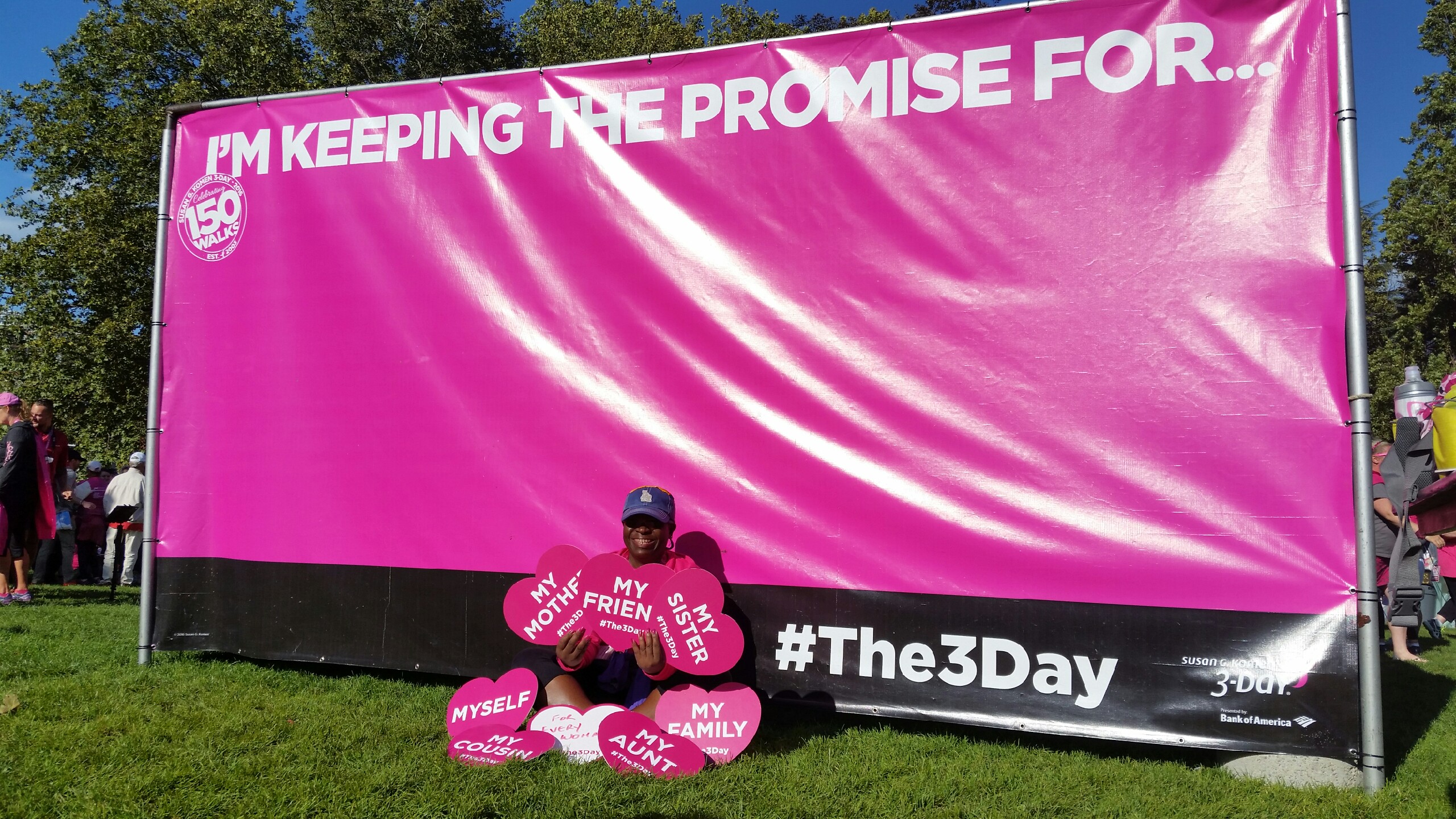 There are few events for which I willingly wake up before sunrise and I don’t need to set 4 or 5 alarms to get out of bed. The 3 day is one of them. The people helped by this walk are worth it. By my estimation my physical and mental challenges pale in comparison to what people with breast cancer go through. So I deal with these challenges and I walk 60 miles in 3 days because I am able and I can walk for those who cannot walk for themselves. I can walk alongside people who need a companion for a few miles to help them make it through or a quick conversation or cheer to help them make it to the finish.