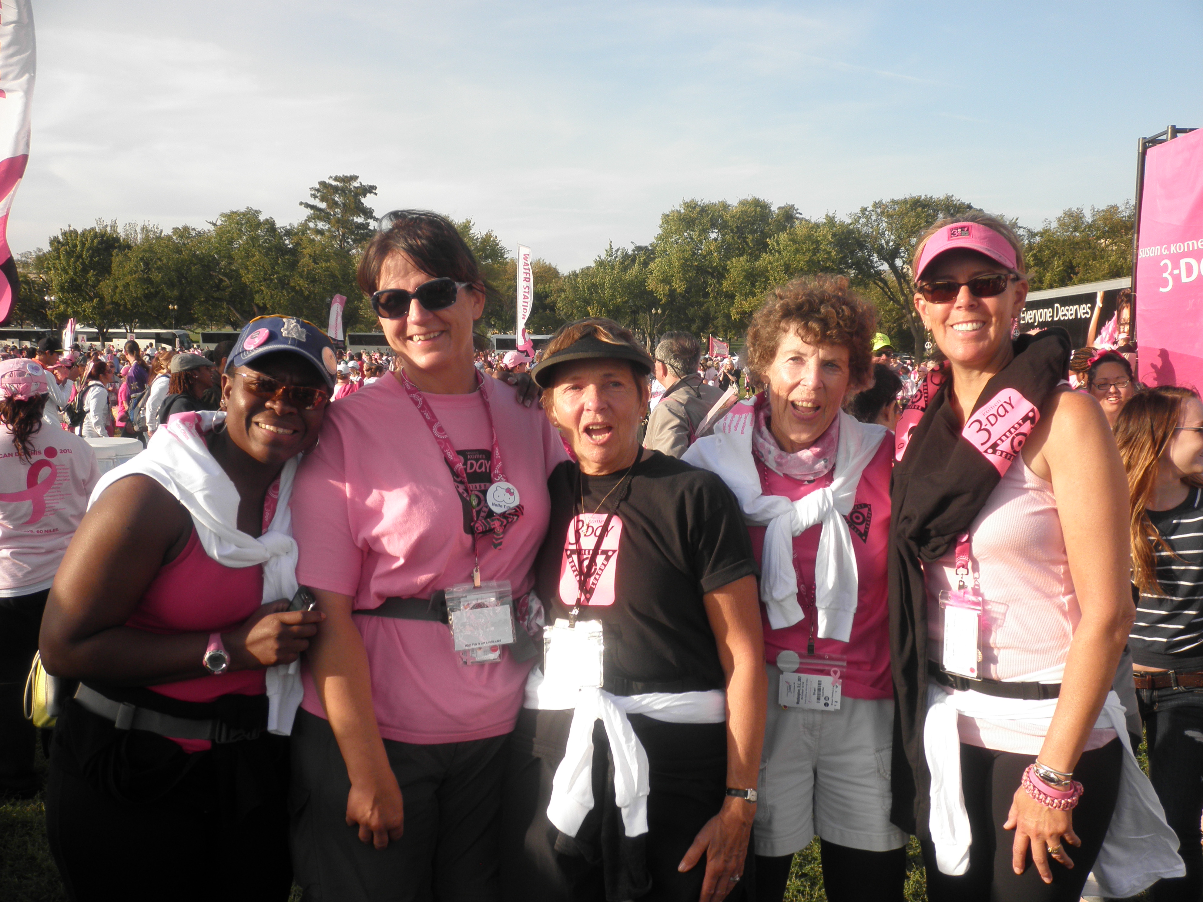 The physical and mental challenges of walking 60 miles take a lot to overcome, yet I find the challenge of raising funds to be a lot more difficult. I, like every other walker, commit to raising a minimum of $2,300. This year, my deadline is August 7th. Any shortfall from my $2,300 minimum I donate myself. I also pay my own travel costs so all funds donated in my name go to Susan G. Komen. For four of the six walks I’ve done so far I was fortunate to raise most of my $2,300 through the kindness of others. For the other two I’ve had to donate just over $700 and $1100. But that is my commitment and I live up to it because it is crucial that we surmount these challenges and make breast cancer a disease of the past.