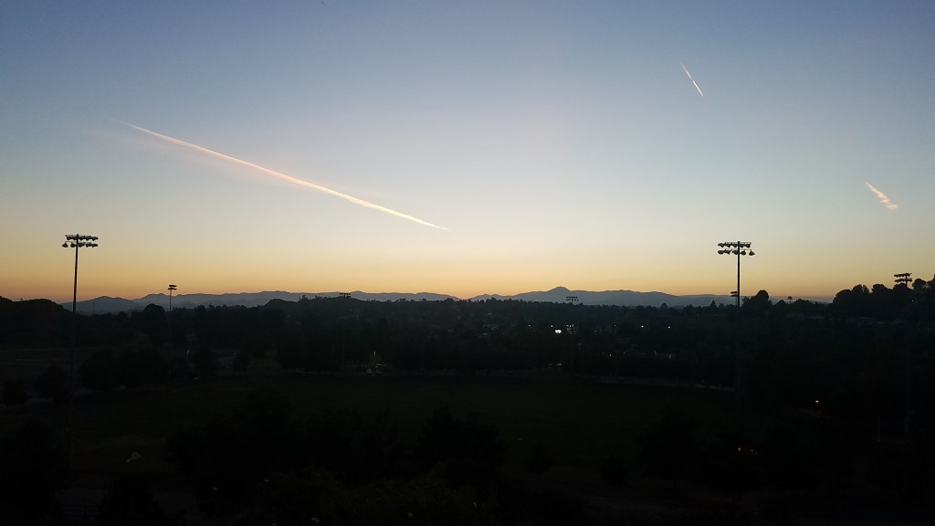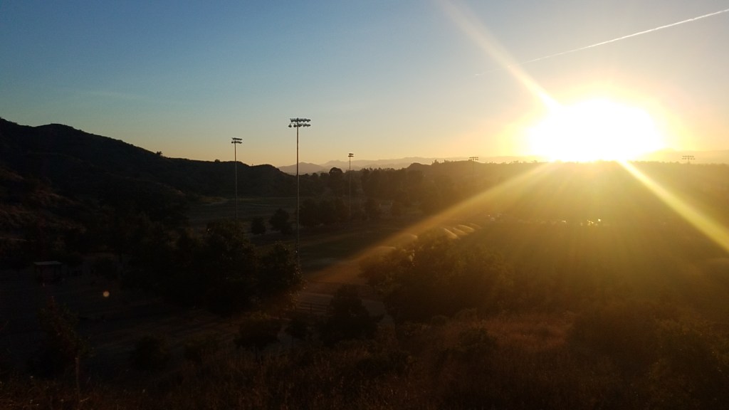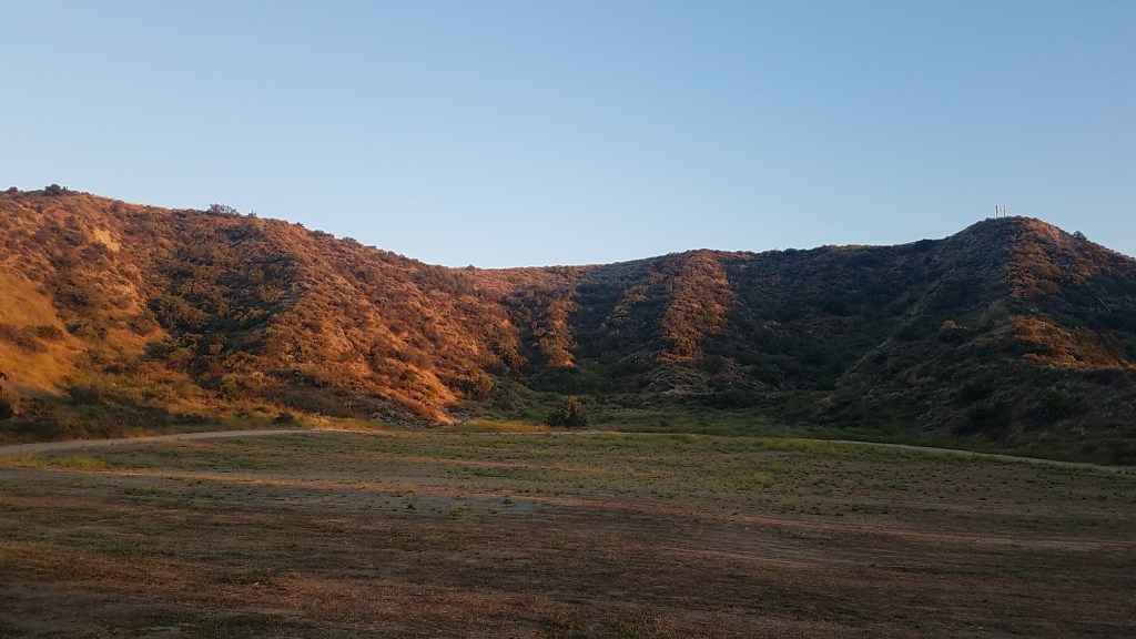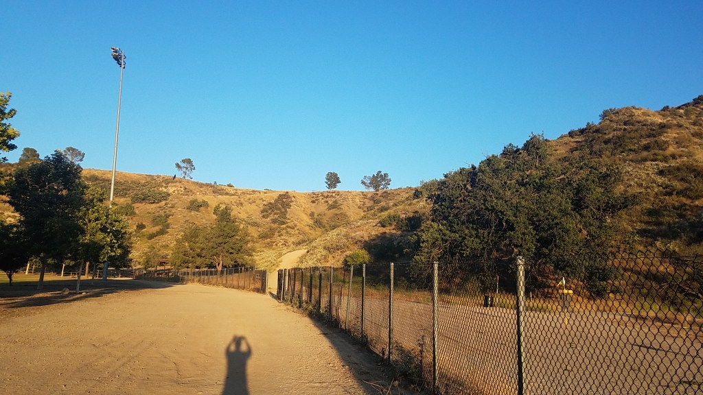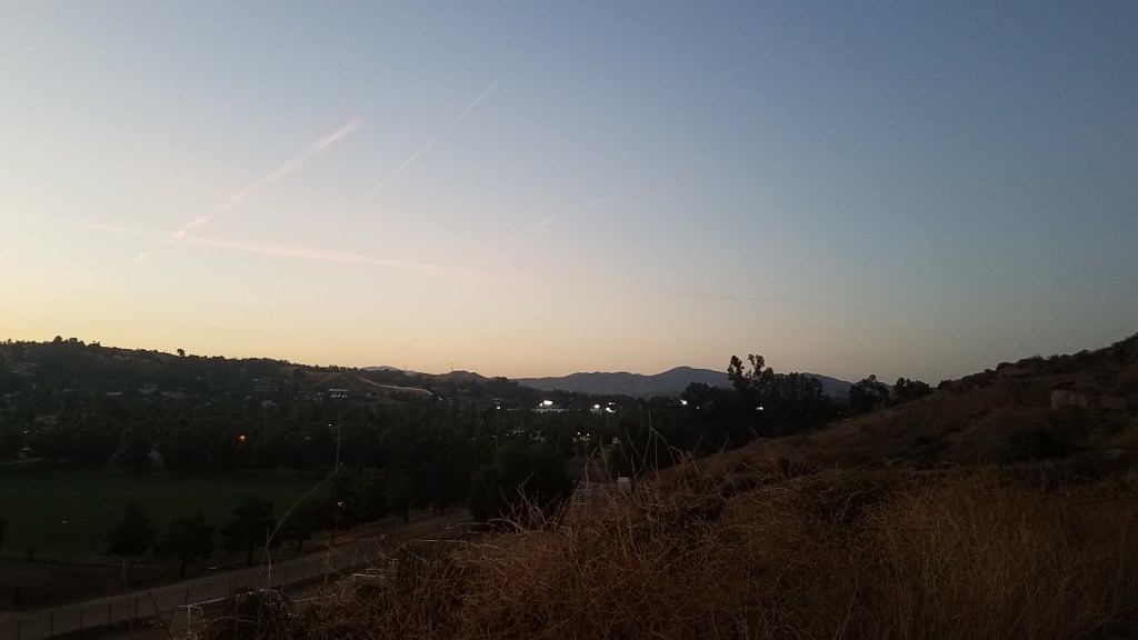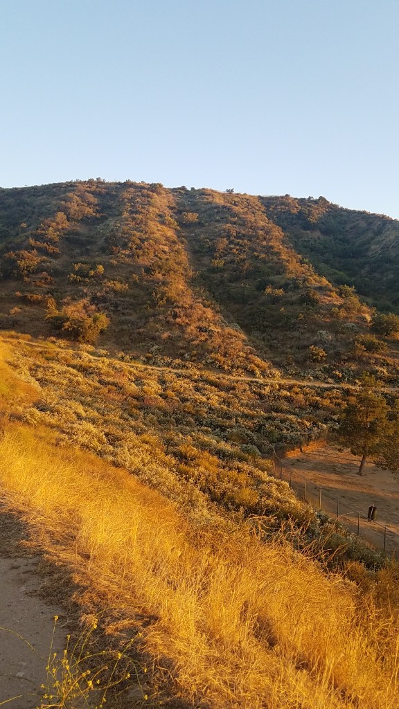 The amount of activity in Central Park also provided a sense of safety because I was hiking alone, while the trail offered enough of the natural experience of a more remote area. Since rattlesnakes can be found in the area, it was reassuring to know that I could call for help if needed and this allowed me to hike without obsessing about possible danger, though I was still on the alert for snakes … because snakes. While hiking I didn’t see or encounter any rattlesnakes (fortunately) but I saw some birds, heard some rustling in the plants that reminded me to walk in the center of the trail, and heard and saw several dogs – parts of the trail are close to the dog park. Hiking in the park at sunset was especially nice and cast a pretty glow over what I could see of the natural and developed areas of Santa Clarita.
