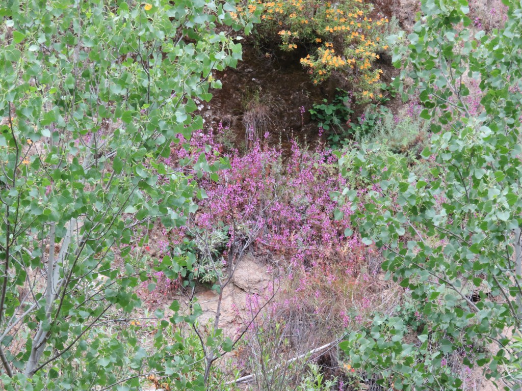 Hart Park has a few trails (Bison, Fritz, Friday, Lisbeth) with lookout points along them. I saw bison (as one would expect on a Bison Trail), birds, many cottontails (some posed for photos), lizards, a large rodent-like animal (perhaps a ground squirrel) that moved too quickly for me to photograph properly, plants like sticky monkeyflower, purple sage, what looked like firecracker penstemon, and so much more.