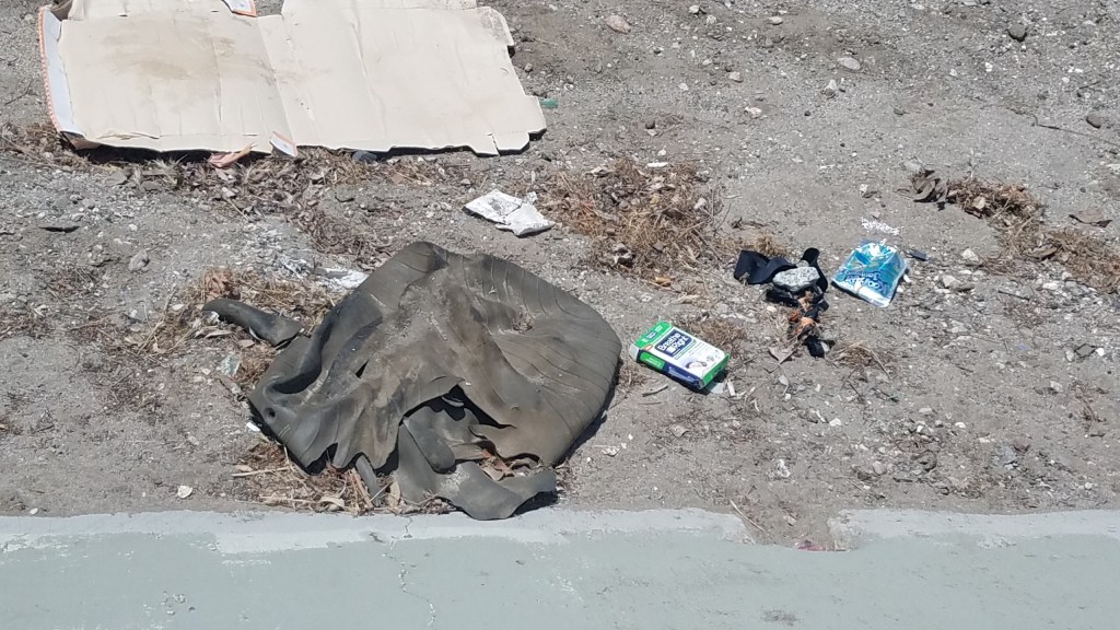 I know there are plenty of areas that are much more polluted, but this is where I walked today and the pollution, while minimal was an affront to me. It may not be that this area is any more polluted than what I saw yesterday, but that the garbage is more obvious because there are a lot more open spaces and it was a lot brighter because I walked earlier in the day. There are plenty of trash bins along the trail so the folks who litter do so because they choose to. I’m not writing an extensive post, just showing some of the more remarkable, head-scratching, eyebrow-raising things I saw along a 1.5 mile stretch of the trail.