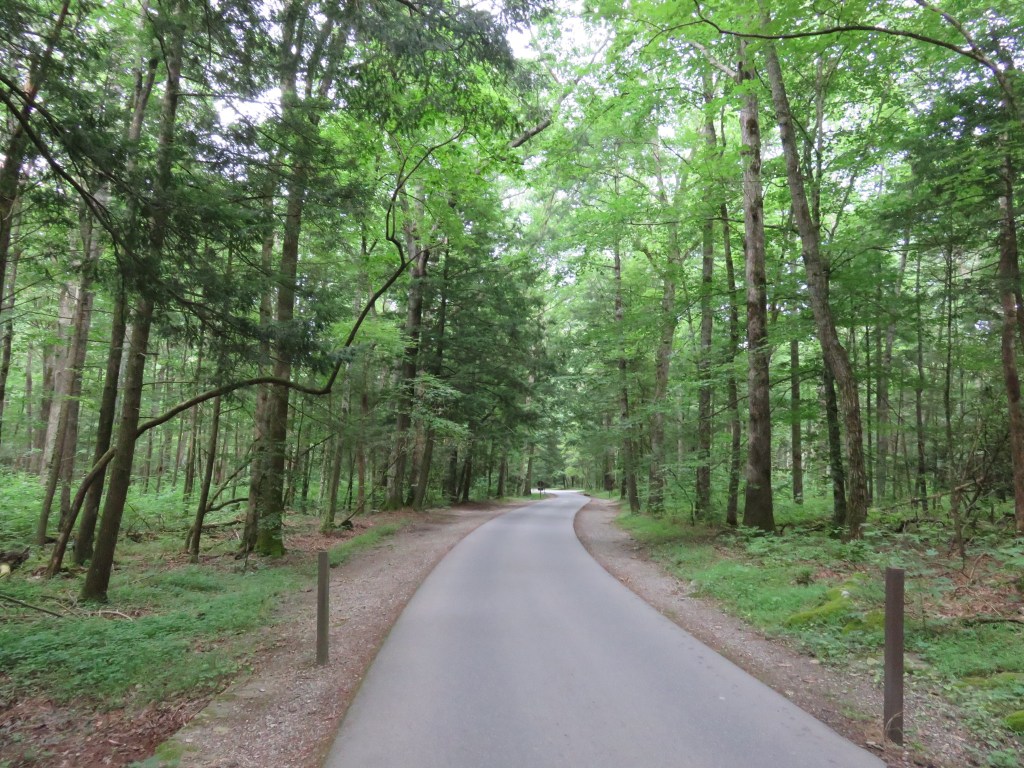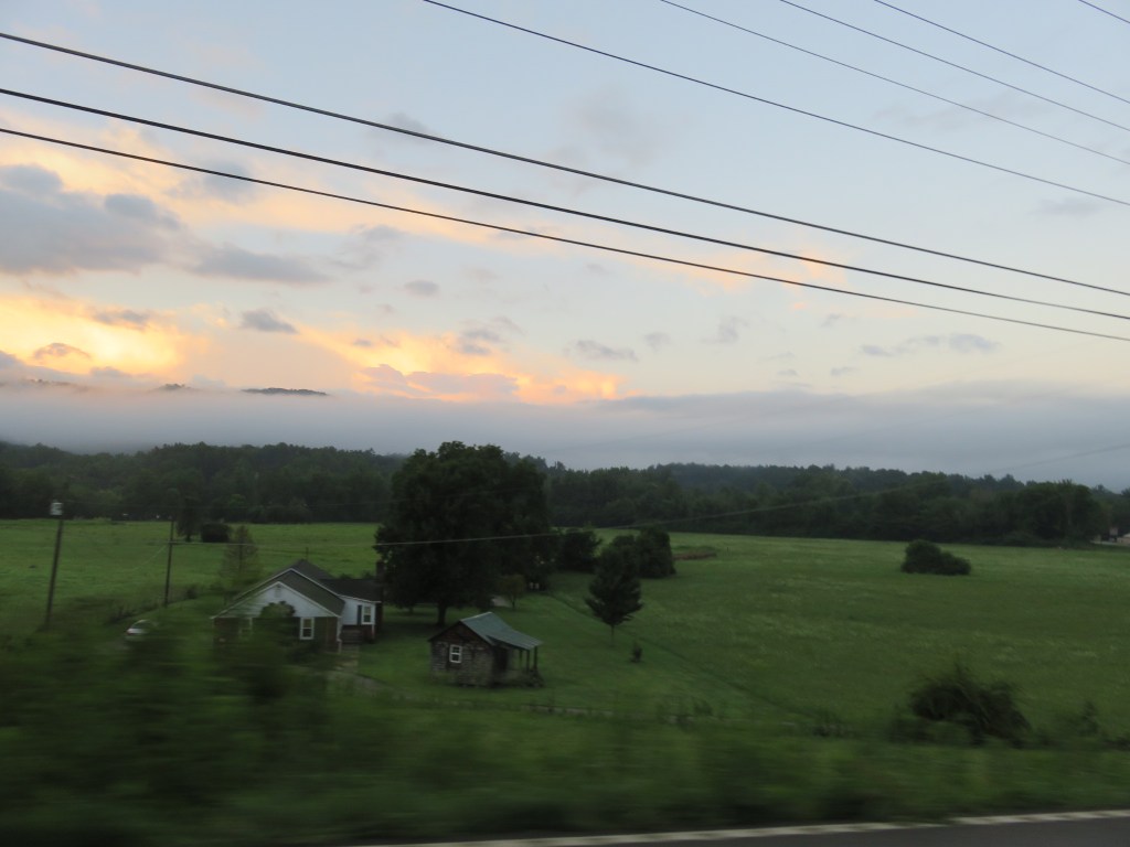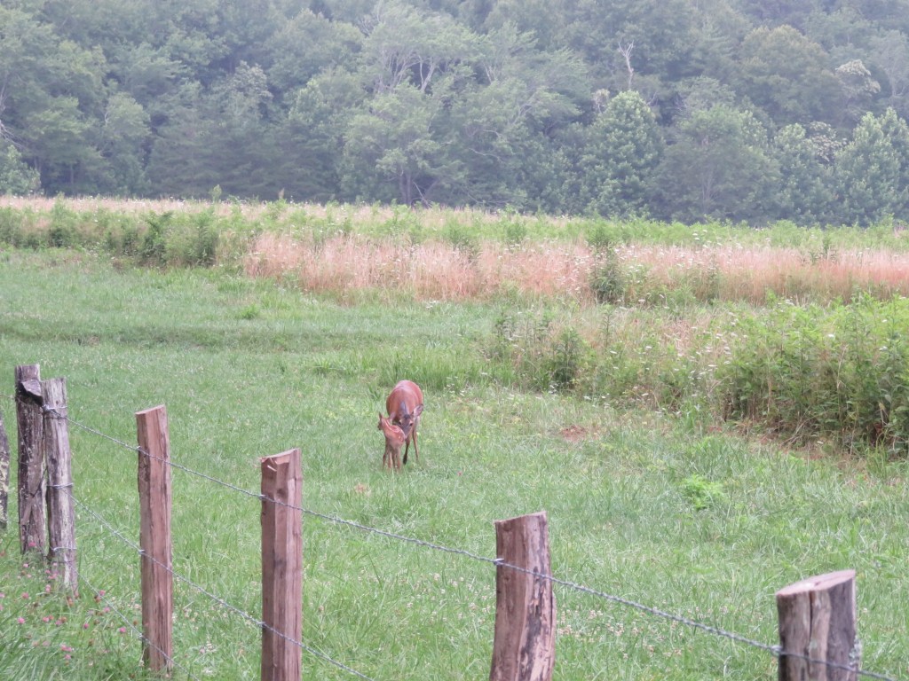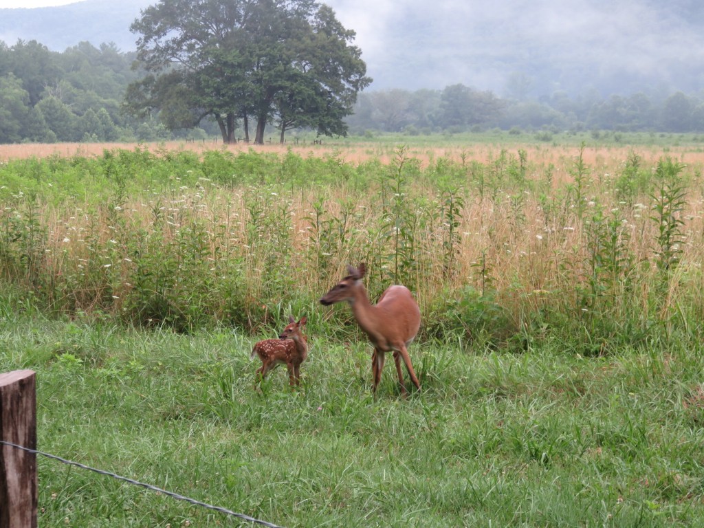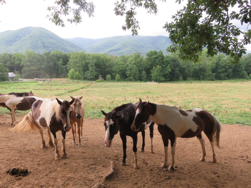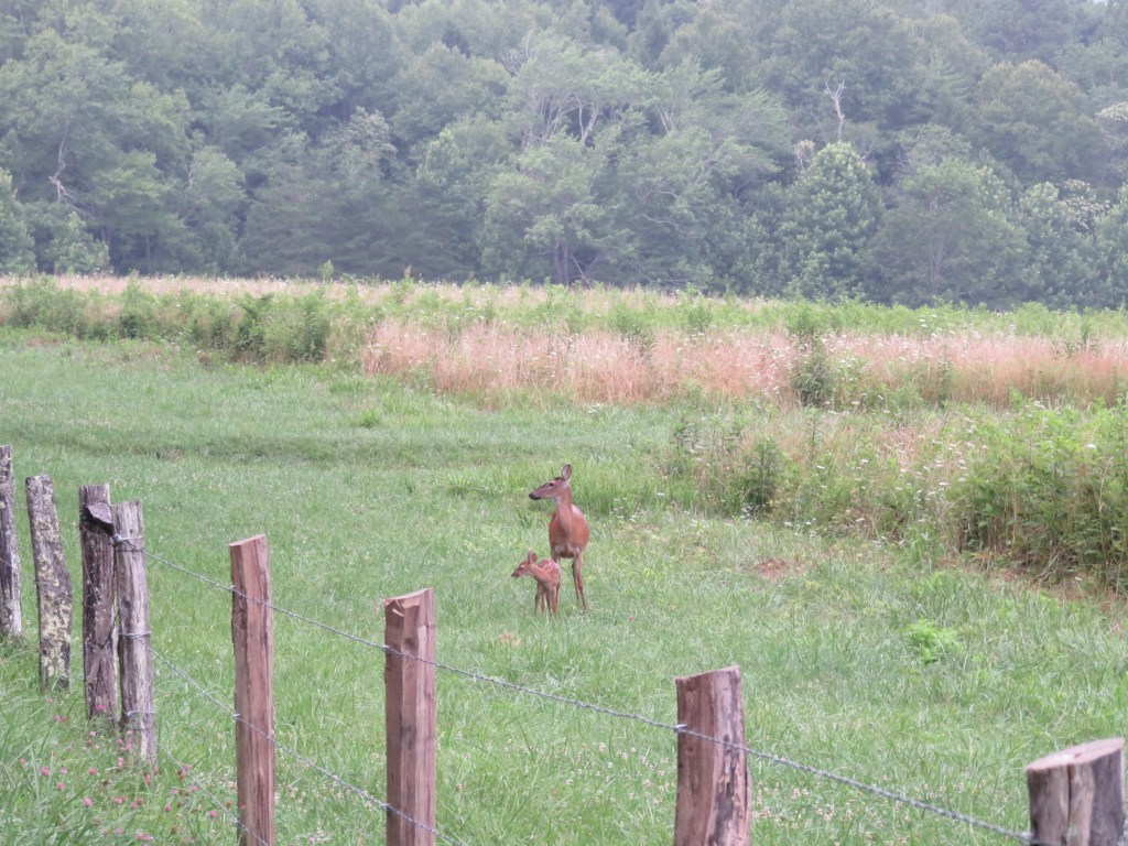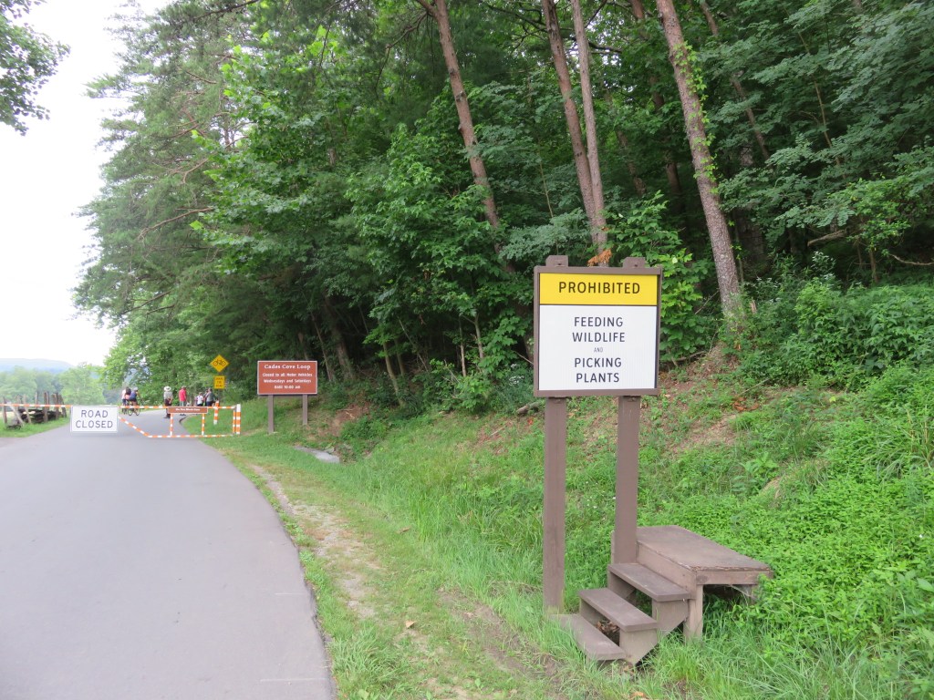 Today I hiked alone in Cades Cove in the Great Smoky Mountains National Park because my group was doing a bike ride. Having not ridden a bike in many years, I decided not to because broken or bruised body parts is not my idea of a great vacation. However, although I didn’t ride with them I left the house with them, lonnnng before the crack of dawn so they could get to Cades Cove early enough to rent bikes. The upside was the sight of the sun rising behind the mountains.
