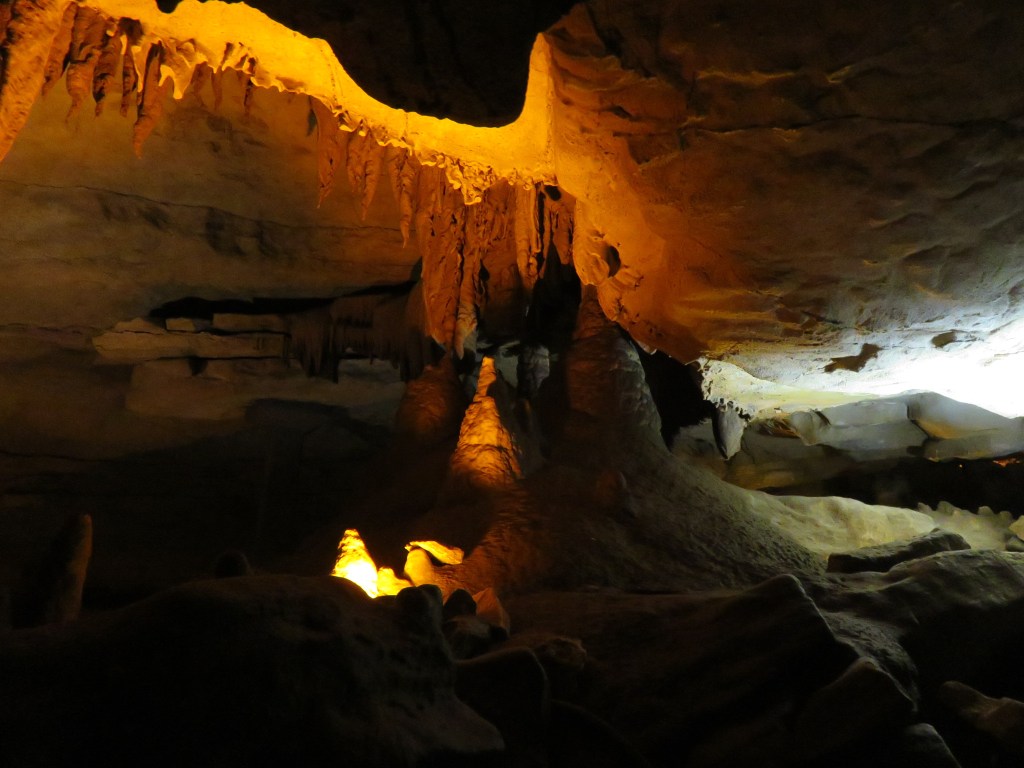 This was by far the best of the three tours. Even though we went through some of the same areas as the historic tour, it was a lot more exciting because it was done with lantern light instead of the electric lighting system. The ranger who led the tour was also very good – informative and humorous. This tour started at 6:30 pm so there was also the added ‘rush’ of touring the cave with a smaller group after it had closed for the day. It was also a better experience because the maximum for this tour was 40 participants versus 110 on the historic tour and D&D. (Note it’s almost impossible to get photos by lantern light, especially when there aren’t that many lanterns).