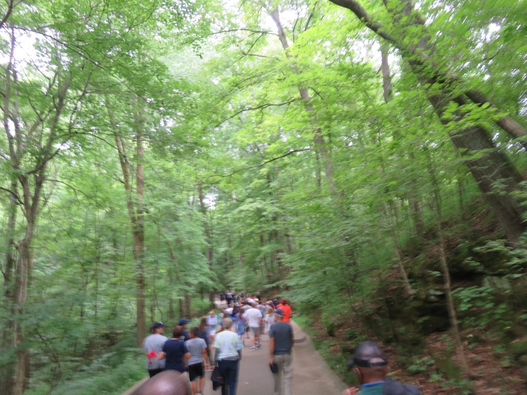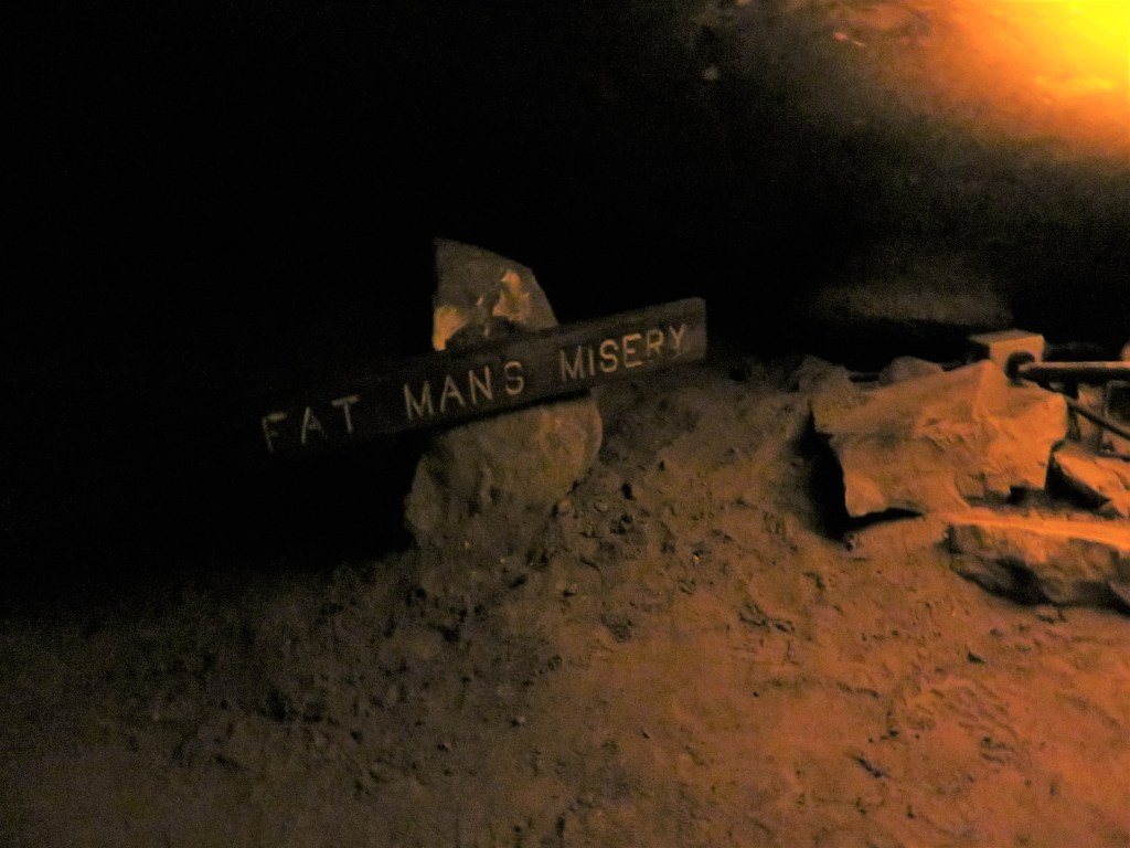 The ranger leading the tour explained how tours were conducted in the early 1800s versus how they are today: our historic tour was about 2 hrs long; a short tour in the early days was 6 hours and a long tour 14! Men dressed in suits, women in dresses with hoop skirts and heels (the horror). There was no electricity so they used lanterns for light. The paths were not paved or smoothed as they are now. Folks were climbing over rocks in that garb! I’m not sure how a woman would’ve made it through the very narrow section known as Fatman’s Misery in a hoop skirt.
