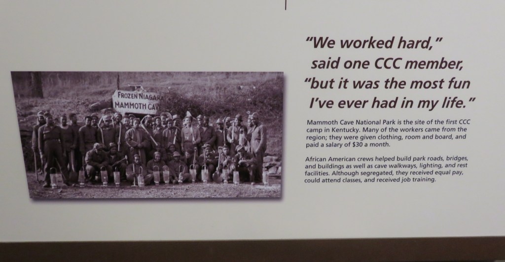 In the 1930s African Americans (including some Mammoth Cave guides) were members of the Civilian Conservation Corps who helped to build better trails in the cave, along with housing, communication systems, water systems, etc. (NPS, 2018). For more see https://www.nps.gov/maca/learn/historyculture/black-history.htm.