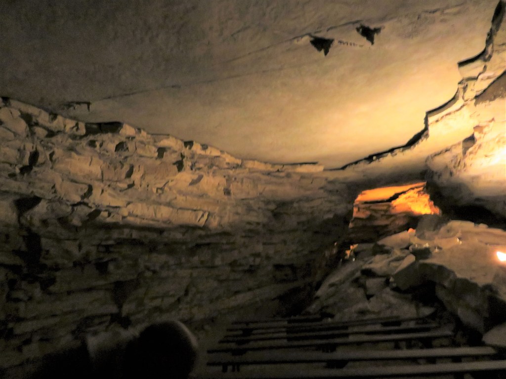 At one point they were all extinguished and it was impossible to see anything in the cave, not even my own hand waving in front of my face. Imagine how brave those early explorers must have been to go in to the cave with lanterns only, not knowing what lay beyond and having no means of communicating with anyone if they ran out of fuel, got hurt or got stuck somewhere. Stephen Bishop first crossed the Bottomless Pit by stretching a ladder across the chasm and crawling over with a lantern held between his teeth!