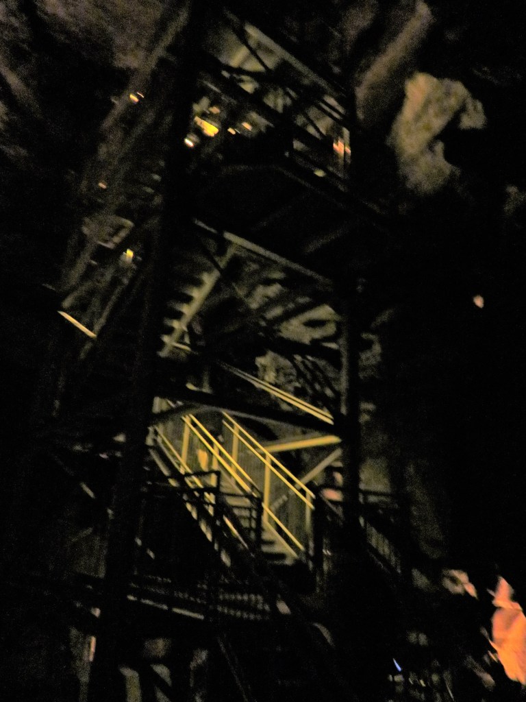 D&D is billed as “a wonderful complement to the Historic Tour, this trip includes a dramatic series of domes and pits, typical large trunk passageways, and a short journey through dripstone formations.” The most dramatic points were the initial descent (the skill of their architect and builders is admirable) and the Frozen Niagara element. Even though there were sturdy metal steps to climb down into the cave, I could easily imagine how challenging the descent originally was: the shaft surrounding the stairs was narrow, with very low ceilings at points, and one of the only areas on this tour where water dripped consistently. Although the cave is primarily limestone, its external layers are mainly sandstone and shale which prevent a lot of water from seeping into the cave from the surface. This means that most of the cave is dry unless it’s an area where a river or a stream runs through.