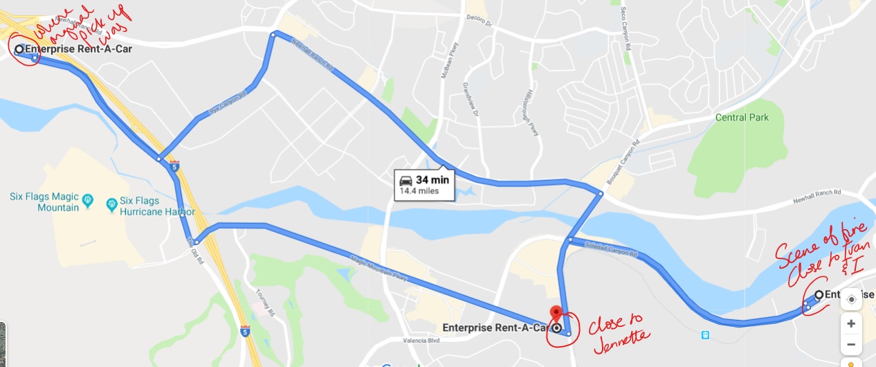 For this trip, the adventure started on the Thursday when we picked up (or tried to pick up) our rental. It took us three locations and two burnt cars to get us the vehicle. First, we thought we were picking up from our usual location (close to Jennetta) and it ended up being another one a few miles away. So we re-routed and went there, driving in two cars. At the second location, the size car we wanted (with satellite radio) was not available so they sent us to a third location (closer to where Ivan and I live), so we took off again. I was driving alone and when I got close to the rental agency, I saw what I thought was mist (it was a really hot day and I thought misters were on) but on turning into the parking lot realized it was smoke coming from a car. By the time I parked I could see that the smoking car was right next to the rental agency, there were flames under the car, and a sheriff was trying to break the car’s window with a fire extinguisher. Then the agency was told to evacuate, our agent confirmed that the car on fire was the one assigned to us (she had just finished checking it to finish the contract and give us the keys when it started smoking), and the car parked beside it was also burning. I heard a small explosion, Jennetta just heard popping. There was no time for photos or videos. We were out of there, though with less haste than we should’ve had, because it was just surreal, you had to be there for the experience. So we left and waited to hear from them. We were sent to the location close to Jennetta, where we thought we had the reservation in the first place and finally got a car, more than two hours later than planned. I won’t go into the rest of the details. Since this post is about Yosemite, not driving around in a lopsided circle, strange experiences, customer service, or an adventure before our planned adventures, I’ll stop digressing and move on.