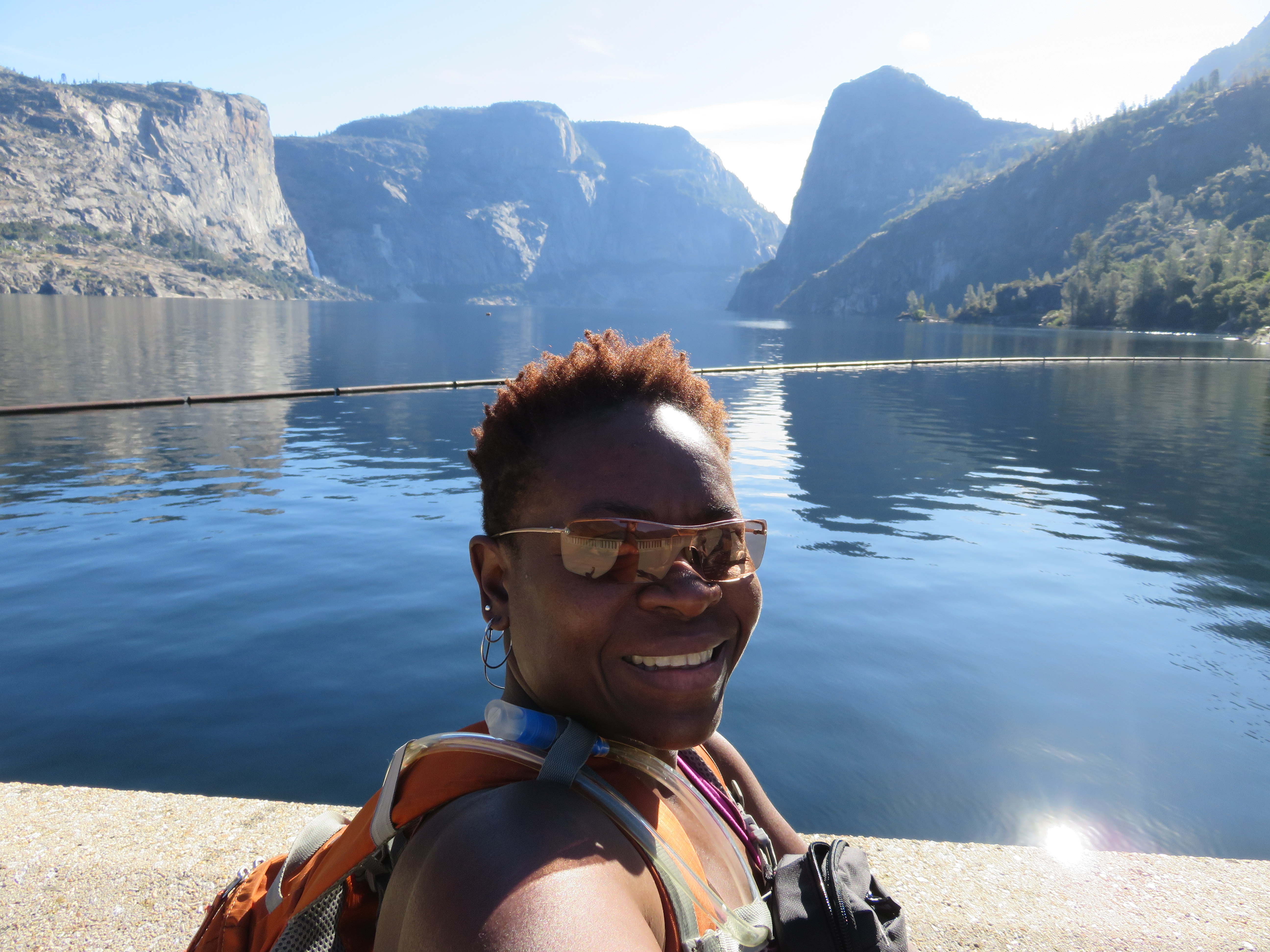 We arrived at our campsite on the outskirts of the park on Friday afternoon, set up camp, ate dinner, and relaxed in preparation for our first hike the Saturday. Though we were tent camping, we weren’t rough camping because the campground had several bathroom locations (given the cleanliness of these bathrooms I would’ve preferred no bathroom), a camp store, game room and more. Plus it wasn’t cold as it had been on previous camping trips so I was able to use my mini airbed as a mat under my sleeping bag and while it wasn’t the most comfortable, it was okay. At any rate I was tired enough – I hadn’t slept the night before since I had to leave at 6 am and only slept fleetingly during our 8 hour journey to get to the campground – that even with minimal comfort I slept for over 6 hours. I awoke relatively refreshed and ready to experience Yosemite for the first time, hiking from the controversial O’Shaughnessy Dam in what used to be Hetch Hetchy Valley, now Hetch Hetchy Reservoir, to Wapama Falls.