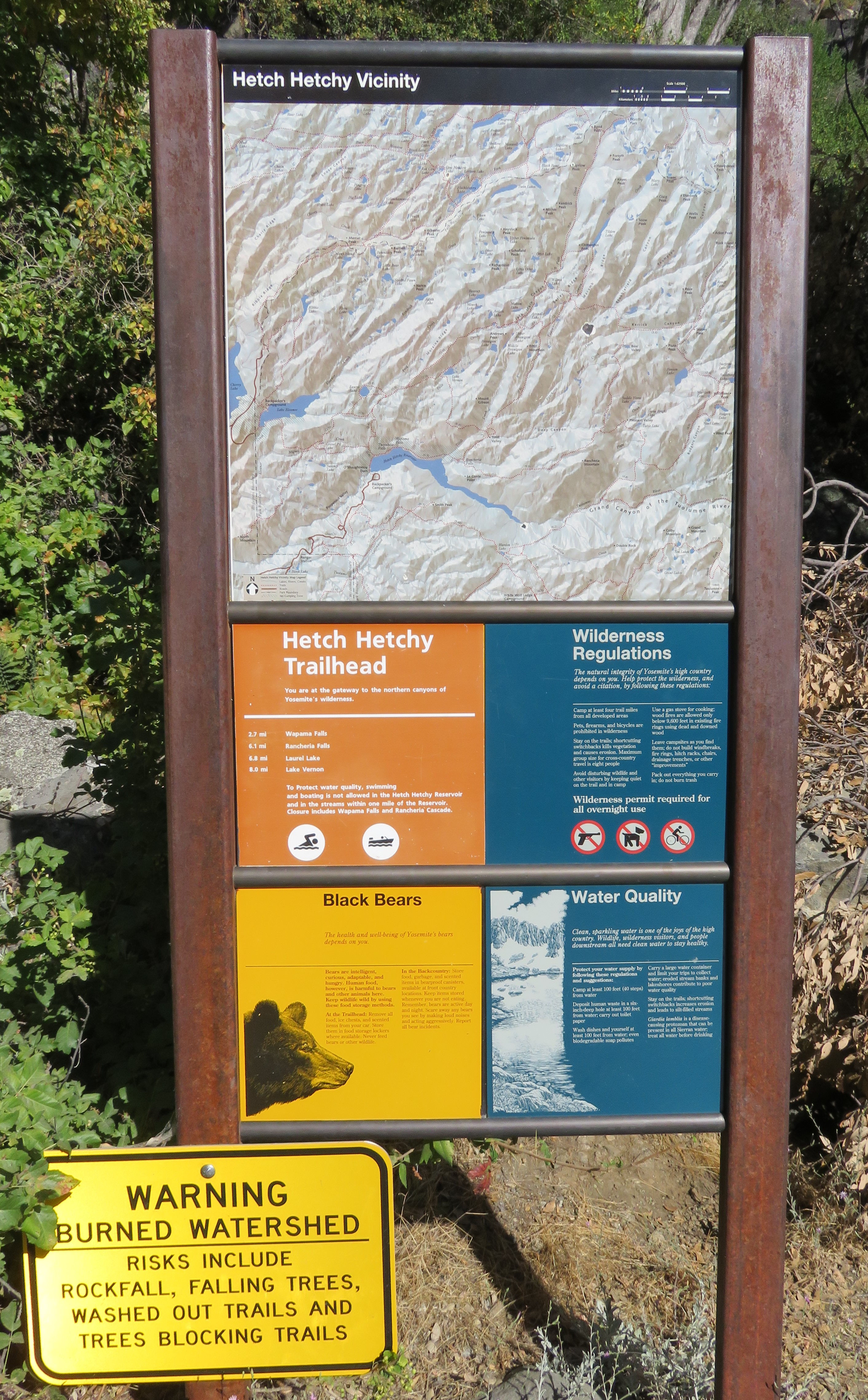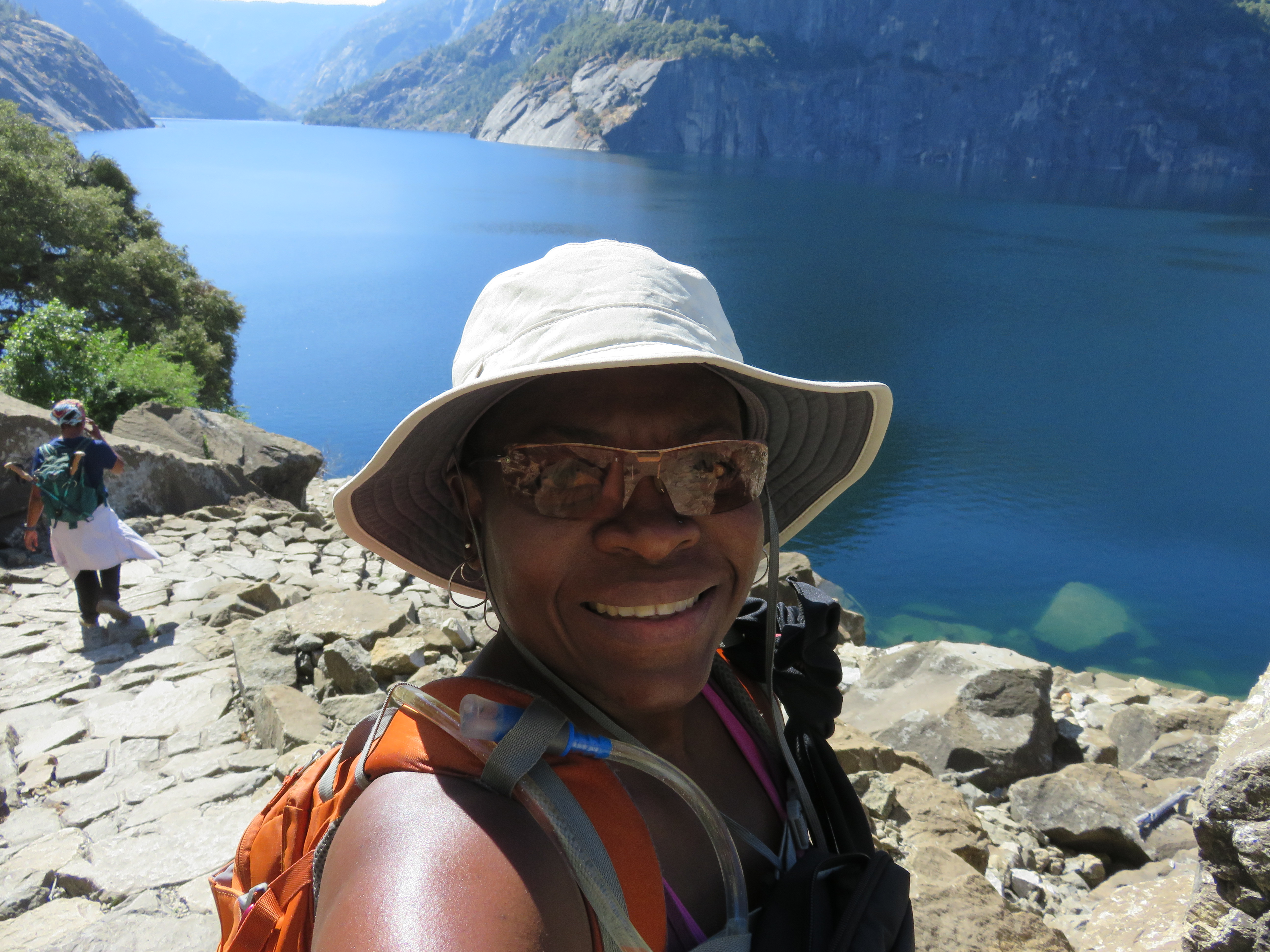 As I was hiking around the reservoir and experiencing the falls, my recurring thought was of a verse from Psalm 118 “This is the day that the Lord has made; let us rejoice and be glad in it.” So I rejoiced that I was fortunate enough to hike in another national park from my bucket list. I rejoiced that I was finally able to see and walk across the dam that I first read about as a grad student many years ago when I was building my knowledge about protecting areas of natural and cultural importance. I didn’t rejoice that the dam that broke John Muir’s heart had been built, but about the opportunity to try to envision the Hetch Hetchy Valley that Muir had fallen in love with and wanted to preserve to share with future generations. I rejoiced about the fact that there was so much wilderness left despite this dam that on August 3, 2019 I could experience it and at times feel that I was there alone and at one with nature, even though I could see my friends ahead of and behind me. I rejoiced in the fact that the controversy surrounding the construction of the dam in the Hetch Hetchy Valley to provide a stable and abundant water supply for San Francisco, engendered a lot more interest in protecting natural spaces in the US and led to the establishment of the National Park Service. I rejoiced in the fact that though the first nationally protected natural area was not in the US (Main Ridge Forest Reserve in Tobago in 1776 was first in western hemisphere; royal reserves in India date back over 2000 years), the NPS took the idea of national parks and protected areas to a previously and to this day still unheralded level and that national parks are truly ‘America’s Best Idea’.