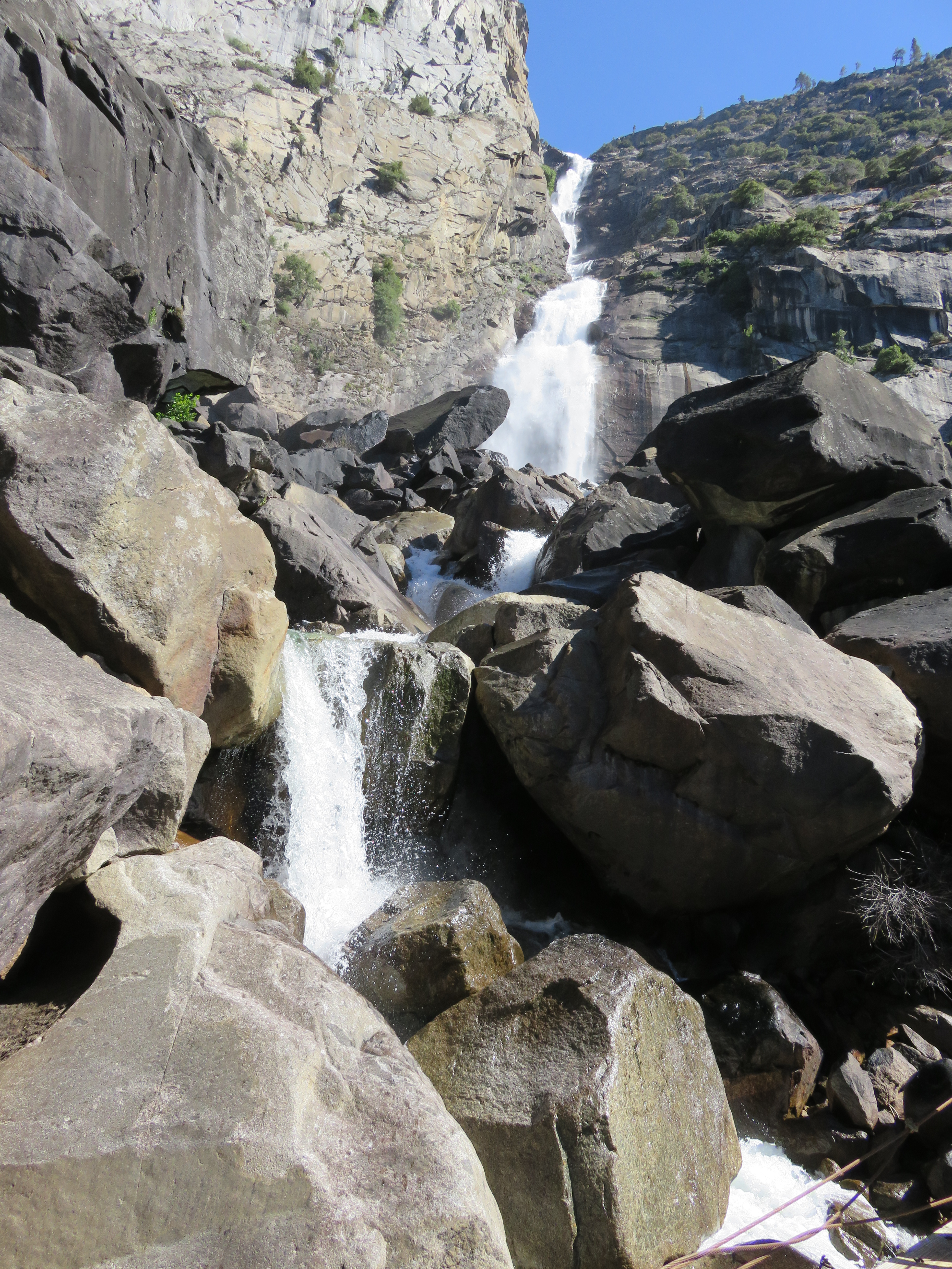 Wapama Falls is in wilderness, but we didn’t need a permit because we were only day hiking. Our hike was just over 5 miles round trip (a part of the longer Rancheria Falls trail). NPS rates this trail as moderate, but it was less than that. It was a good warm up for our hike the following day. The views were spectacular and the sounds of rushing water, exhilarating. All around an excellent introduction to Yosemite.