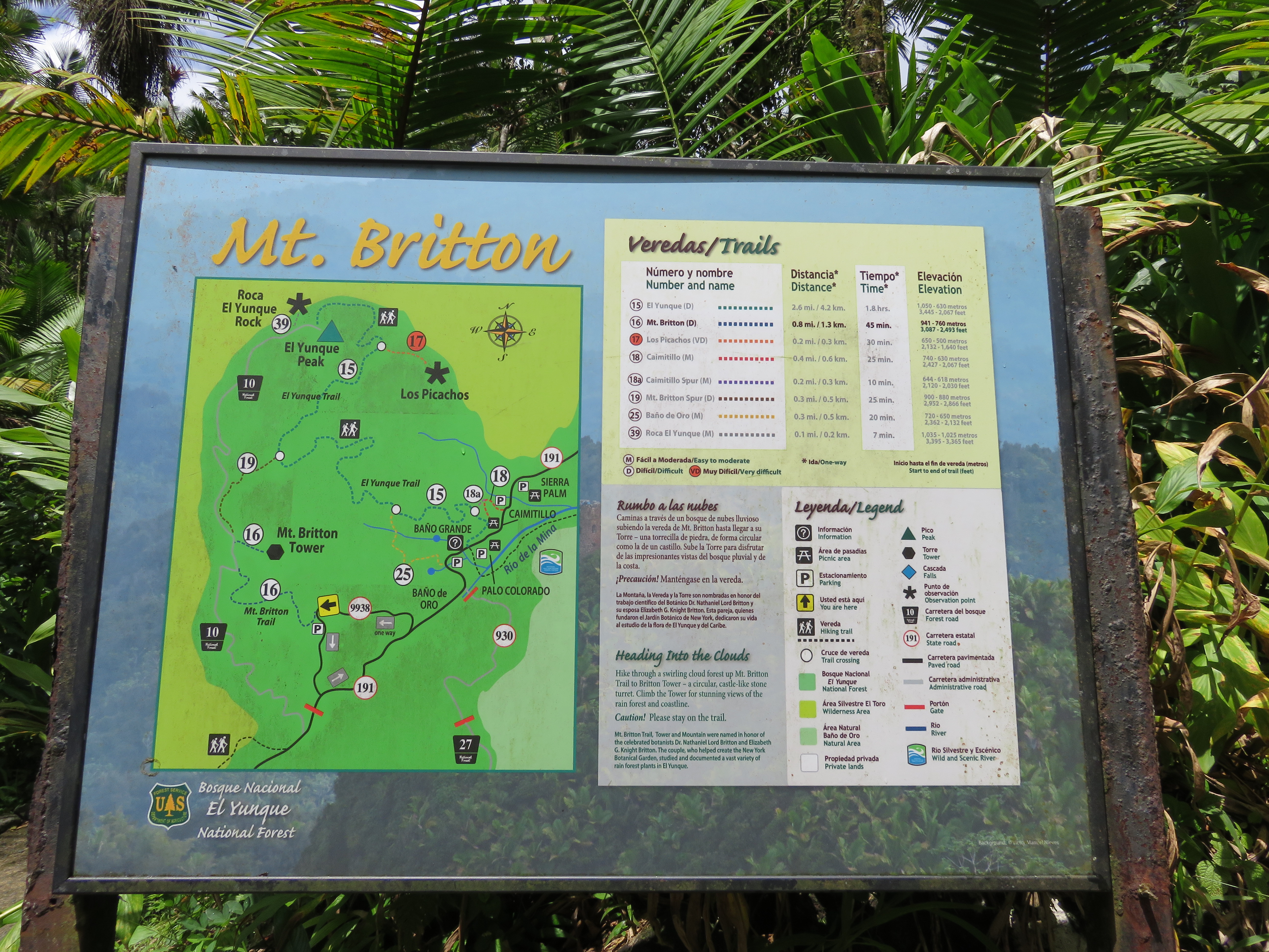 I completed my final hike for the 52 Hike Challenge Adventure Series in El Yunque National Forest in Puerto Rico. It was on the Mt Britton Trail, which though just only 2 miles round trip, was challenging because of the steady uphill climb for the first half. I love Puerto Rico, I love the Caribbean and I was really excited that I got to do my final hike in one of my old stomping grounds. At 29,000 acres, El Yunque is one of the smallest forests in the National Forest System and the only tropical rainforest. Despite its size, the NFS rates this forest as one of the highest in terms of biodiversity. It is home to hundreds of plant and animal species, with some endemic ones in the mix.
