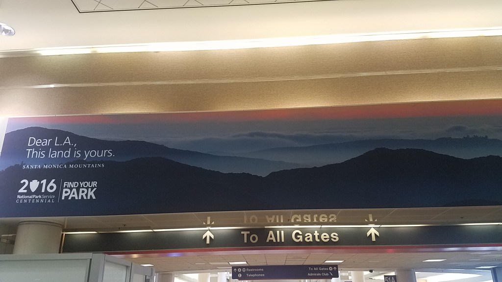 Now it’s Wednesday evening and I’m sitting in the airport (again) waiting for my flight to Boston. I missed the flight (again) that I was originally booked on because I was working before I left for the airport and arrived at my shuttle station about 3 minutes after the shuttle left. But I have a lot of time to get to Boston before my walk starts on Friday, so I’m not worried. Plus the flight I’m standing by for is a direct one, rather than the connecting I had booked, and I arrive a few minutes earlier. So yay! With the change in flights I had to change terminals and saw the sign pictured below in the new terminal as I left the security check point to head to the gate.