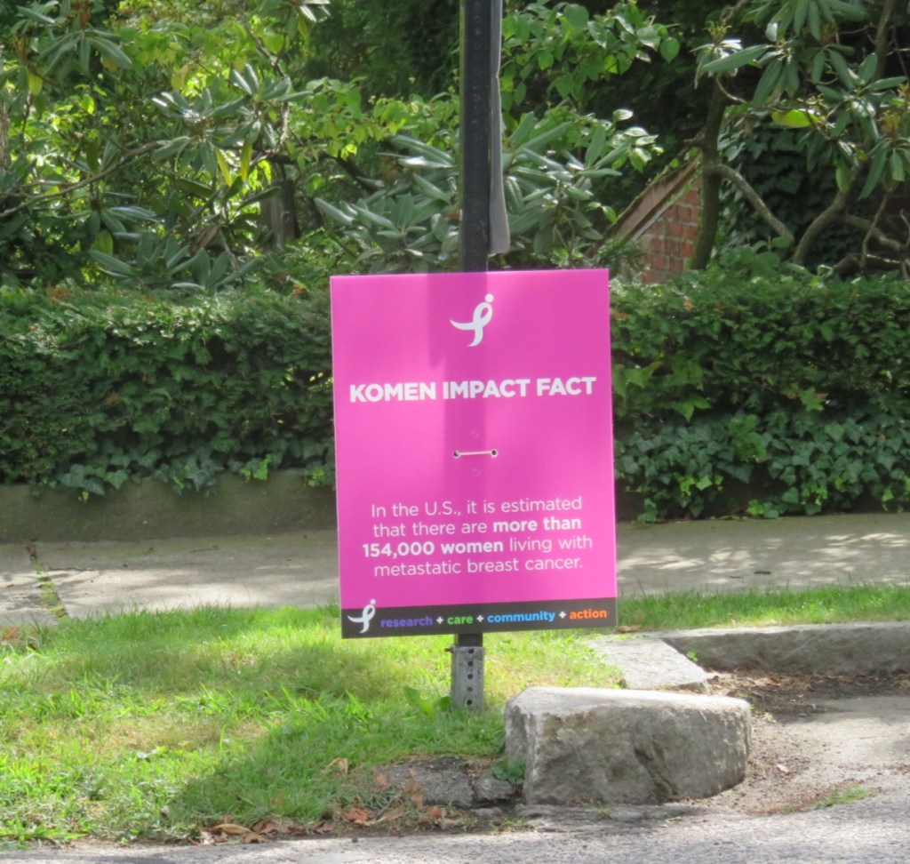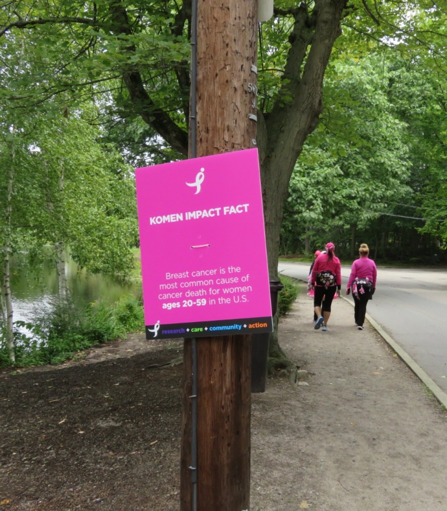 I like how the event organizer installed informative breast cancer related signs all along the route (all 3 days) that remind/inform walkers and the general public alike. I took more photos of these signs today.