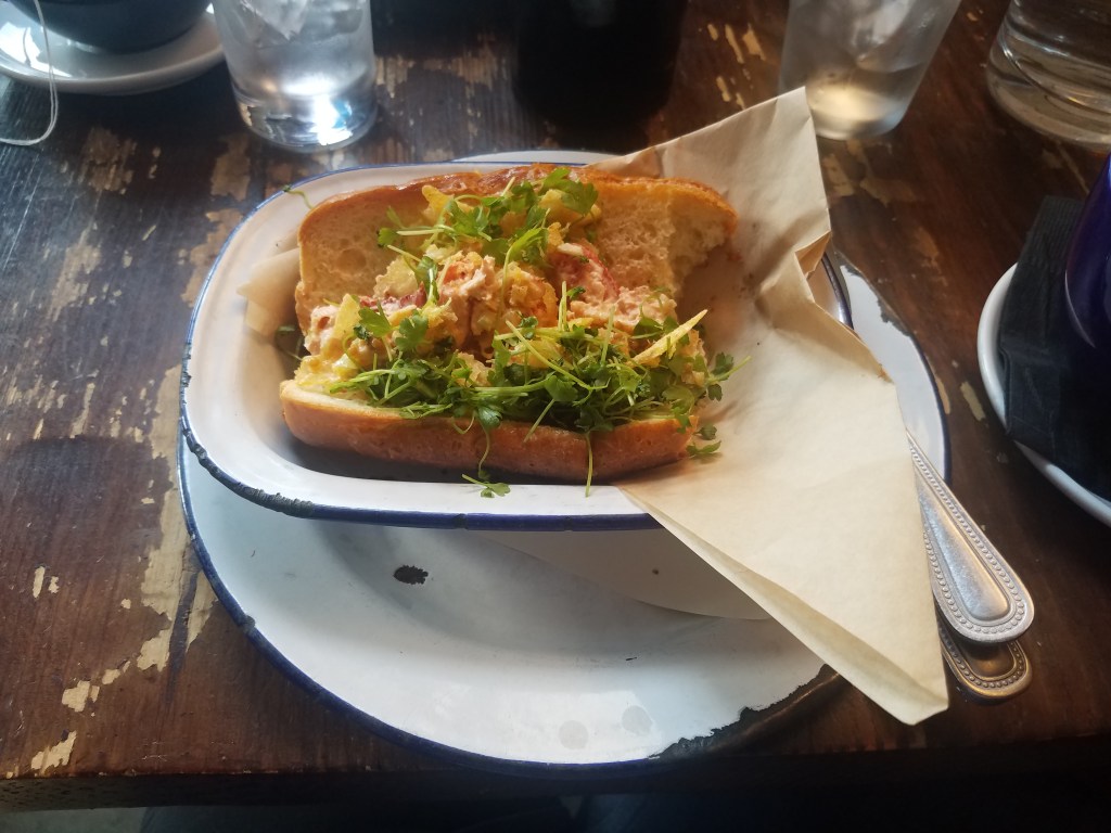 After pulling up lots of broad leaf filaree, we of course had to eat and deciding where to eat is usually a job and a half 😁. This time around it was relatively simple because close to the end of our work two volunteers next to us were chatting about good restaurants in the area – we just chose one they discussed. It turned out to be a good choice. My lobster roll wasn’t as big as I expected, given what I paid for it, but it was certainly tasty.