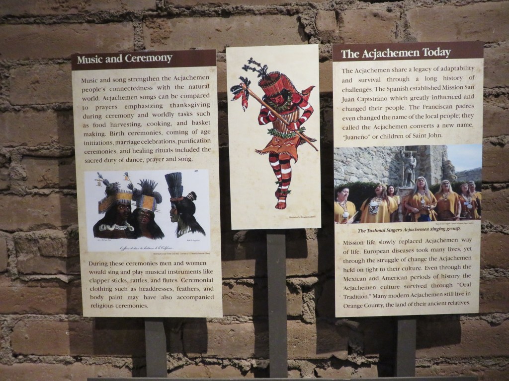 There are 21 Catholic missions in California. I’ve visited the Santa Barbara mission twice. This was my first visit to the SJC one. As with Santa Barbara, I loved the grounds of the mission and the preservation of the buildings. I do not love that missionaries coerced/enslaved/tried to erase Native people and their culture by ‘converting’ them to Catholicism. When I heard on the audio for the self-guided tour that the missionaries taught the Acjachemen People in San Juan Capistrano how to clear land for planting it galled me. When I saw plaques on tombs with the names of missionaries but none with native names I was enraged. “It is estimated that about 65,000 Native Americans lived in coastal zone of California (mission chain zone) in 1770 and by 1830 only 17,000 remained living, a decline of 74%” (missionsjc.com).