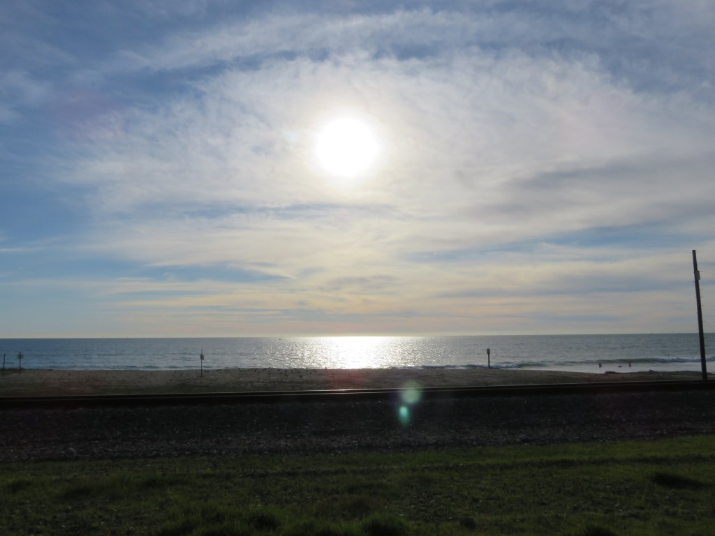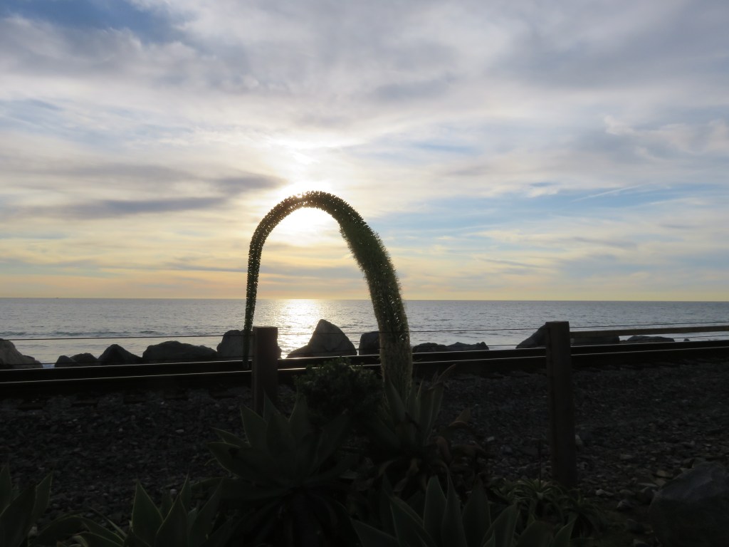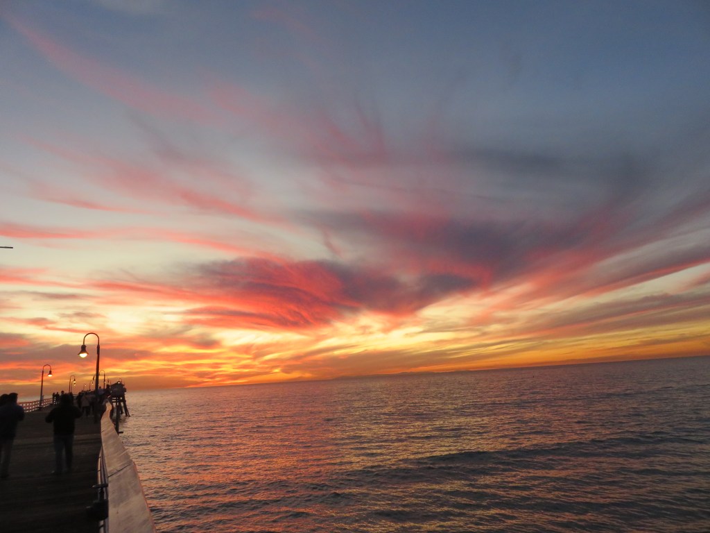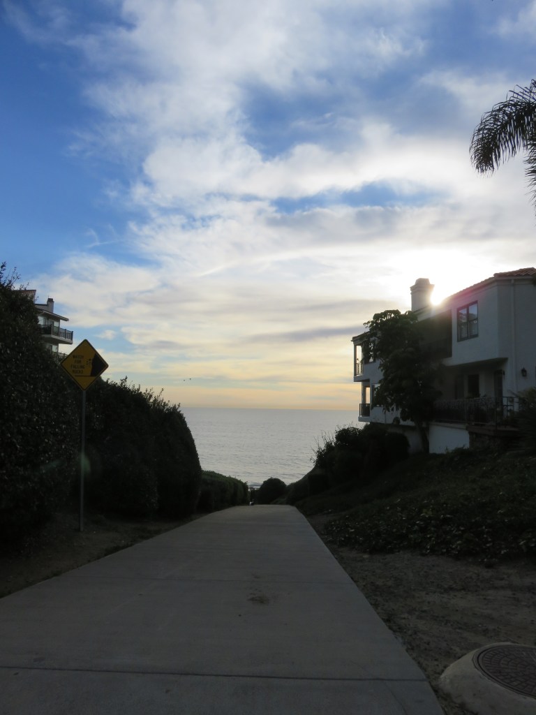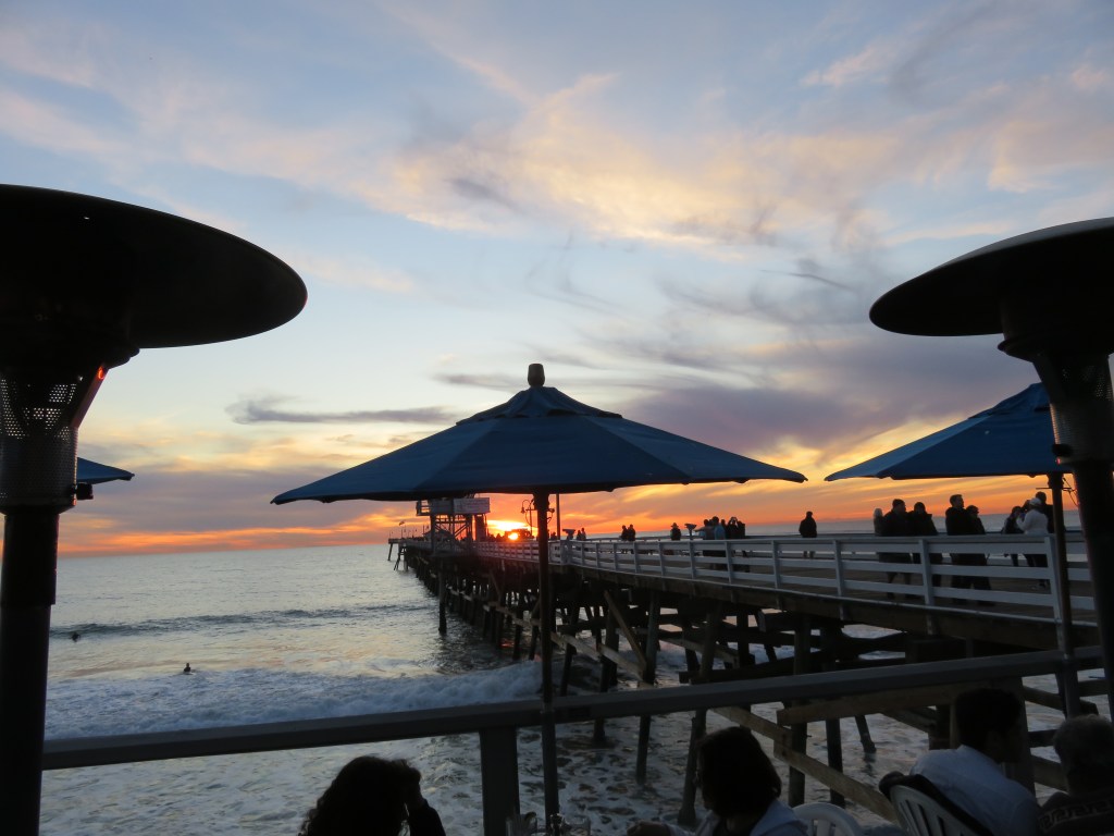 We ended the hike at the San Clemente Pier, which is not nearly as developed as the Santa Monica Pier or the Santa Barbara Pier, but is beautiful in its simplicity. I had a lovely (well-earned) meal (cause 9 miles) on the deck of a restaurant on the pier and enjoyed the sunset. I may need a better camera because my photos do not illustrate the awesomeness my eyes saw. The sunset was GORGEOUS! As I watched it, I thought of the restaurant’s wait staff. I hope they are able to pause each day and appreciate that there is at least one tremendous benefit from their jobs. I don’t know if it makes up for schlepping trays or dealing with demanding customers, but I think watching the colours painted in the sky by the setting sun offers a few minutes of respite from the not so pleasant parts of their jobs.