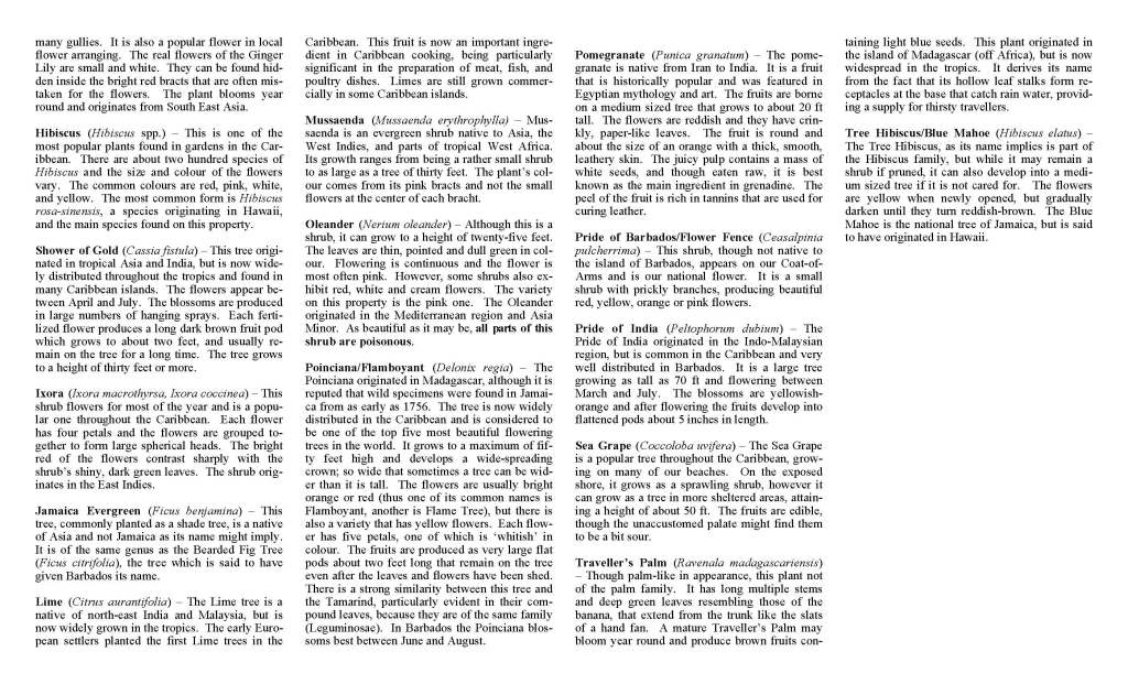- Labelled plants on property