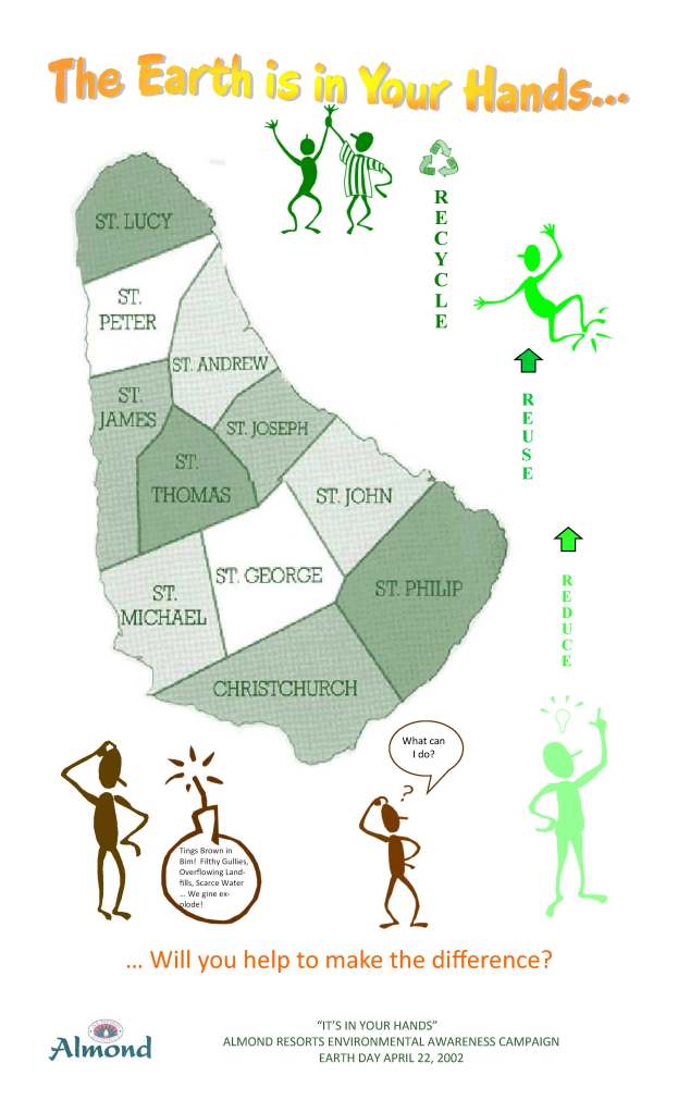 I have drawn these conclusions because as ECM I was responsible for spearheading the company’s greening effort, training staff and management, establishing best practices, and being the public face of Almond’s greening initiative. Furthermore, I mainly reported to the Director of Hotel Operations (aka head honcho); I eventually had a budget of about BDS $20,000 annually which fortunately excluded my salary and capital projects, and recommended expenditures on the latter; I had access to information that was not generally shared outside of executive management; I participated in weekly management meetings; and my voice was always heard (even if my recommendations were not always taken on board). That trust and respect and the significant changes that were implemented under my guidance, meant that though I officially resigned from the company at the end of 2002, I continued to act and speak on its behalf until I left Barbados in July 2004 to pursue my PhD.