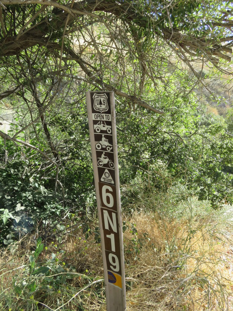 Sometimes directions are confusing. Or you don’t print a map, so without cell service you have to wing it til you find it. We started the hike on a US Forest Service OHV trail, realized it wouldn’t lead to the falls and headed back down. That was close to two miles. I’d driven to the falls before the others arrived, so I knew where to go by road, but not where to locate the trailhead (that’s why the sign is the last photo). We set off again in search of the falls, but after another mile or so, decided to go back to our cars and drive the rest of the way. We piled into one car and drove. Not too far by car is definitely not the same by foot. For that particular road I was glad that we returned for a car. That road wasn’t built for walking. Driving was safer.