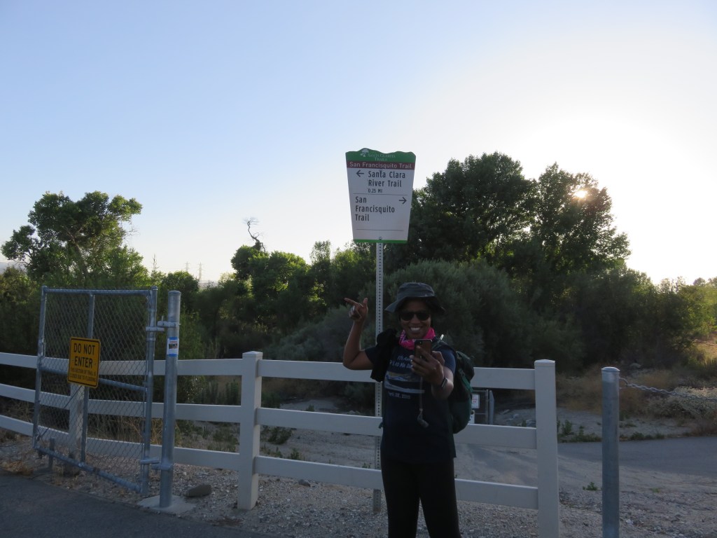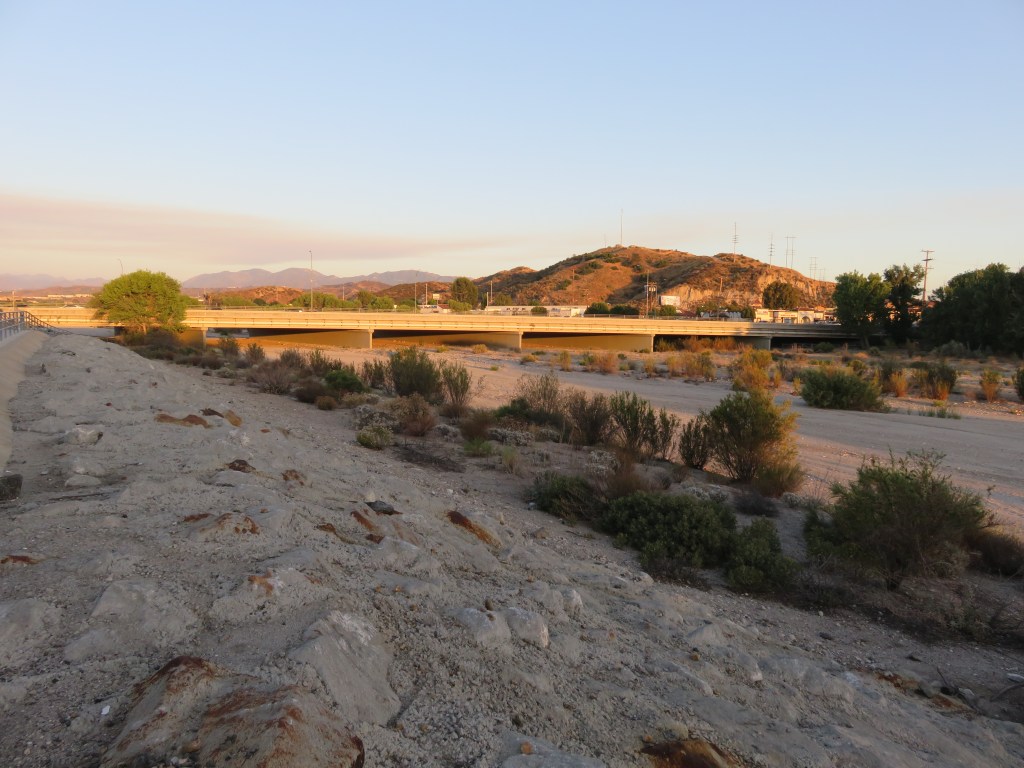 July 5th was a hot day. We decided to do an evening hike around 5:30 because earlier in the day was out for Jennetta and it would’ve been too hot after 10 am. No complaints from me, I like hiking in the evening and I especially dislike waking up early – my body actually aches when I have to do it. We had a time and a trail in Towsley Canyon in mind. However, I knew by 3 pm that it would still be too hot at 5:30 so we delayed until 6:30 – a good time for a cool-ish sunset walk. We chose San Francisquito Creek and Santa Clara River trails in Awesome Town because hiking uphill in Towsley at 90 degrees temp was the opposite of tempting. It turned out to be such a nice walk (not a hike) that at mile 6, I was hitting my stride, had a good rhythm going and did not realize we had made it back to the turnoff for our starting point.