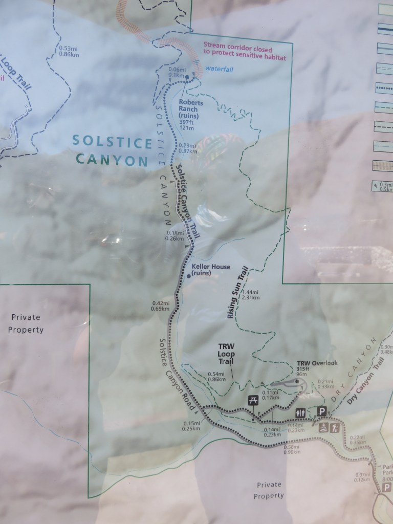 Solstice Canyon is in Santa Monica Mountains National Recreation Area (at 153,075 acres, SAMO is the largest urban national park in the world (NPS, n.d.). According to NPS, the Chumash discovered Solstice Canyon thousands of years ago. In Solstice Canyon I hiked two trails: Solstice Canyon Trail and TRW Loop Trail.