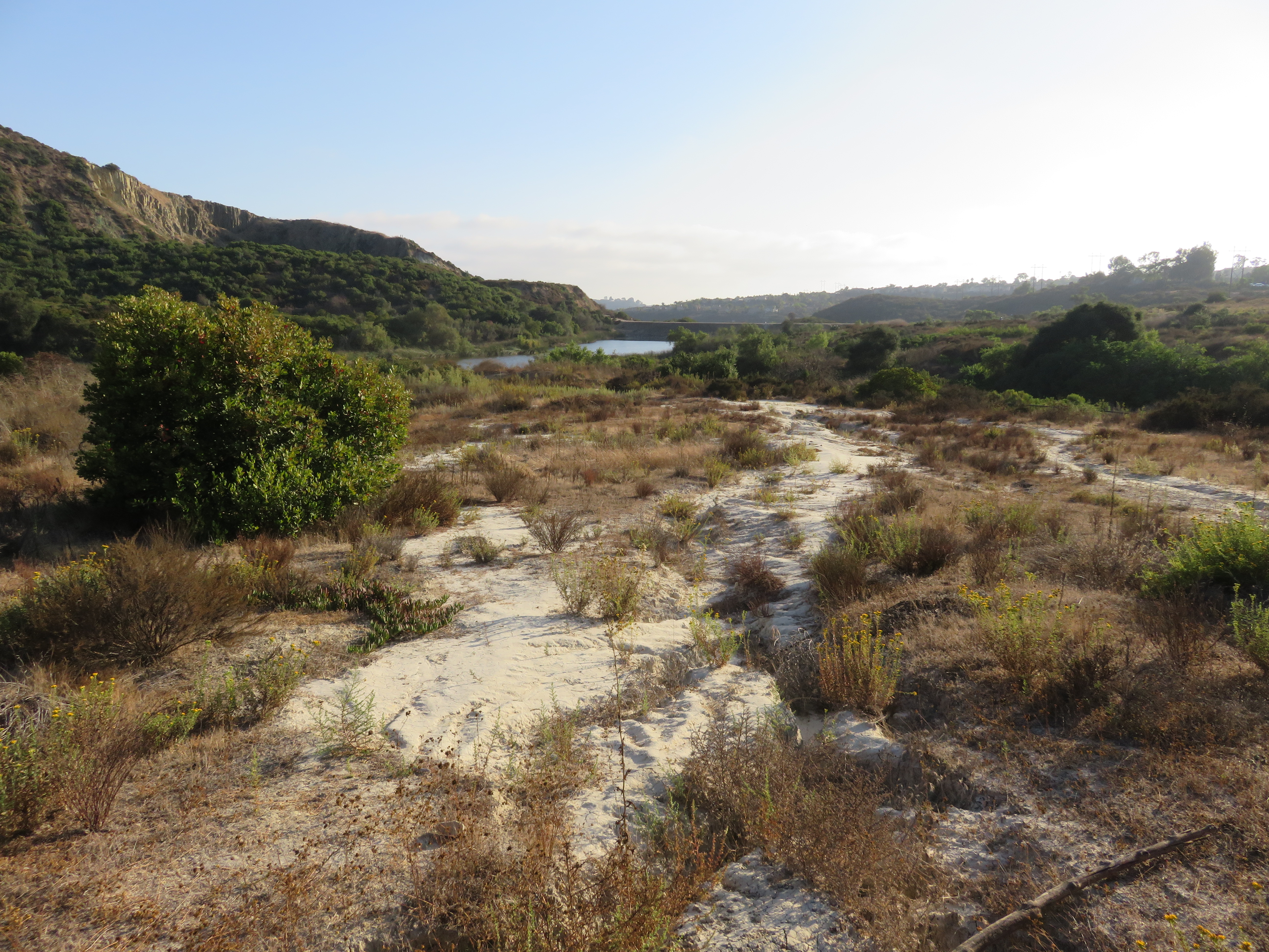 San Diego is 2-3 hours drive from Awesome Town, depending on traffic. Jennetta and I carpooled and met our friend and her daughter there. I’d chosen a hotel that was between Torrey Pines SNR and Cabrillo NM, 30 minutes or less to each site and since Lake Calavera was on the way to the hotel, we hiked there before checking in.