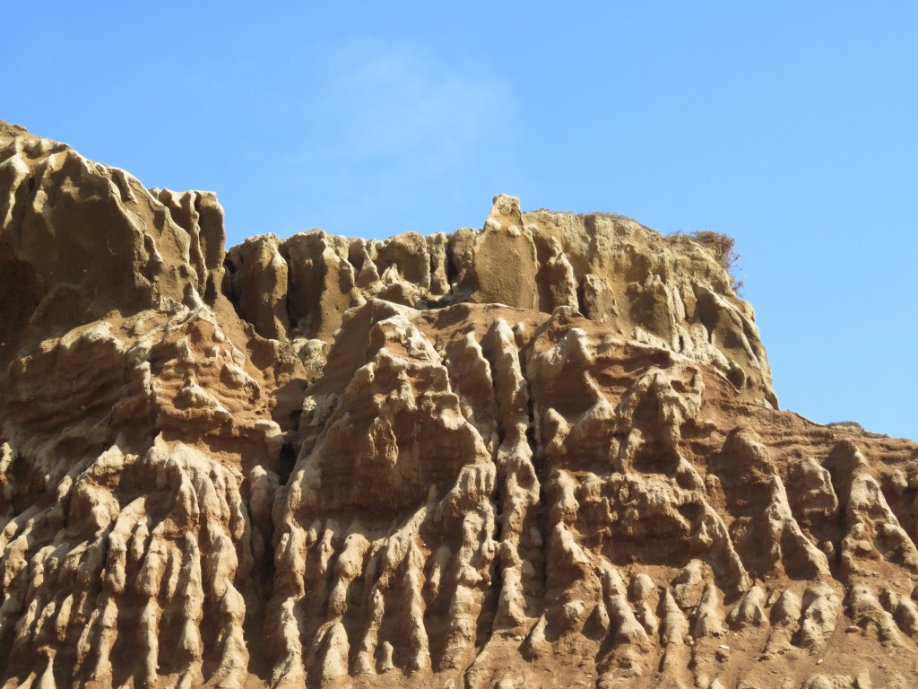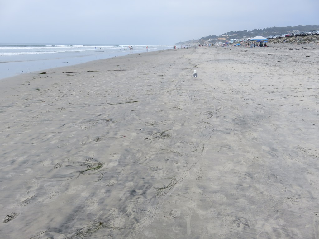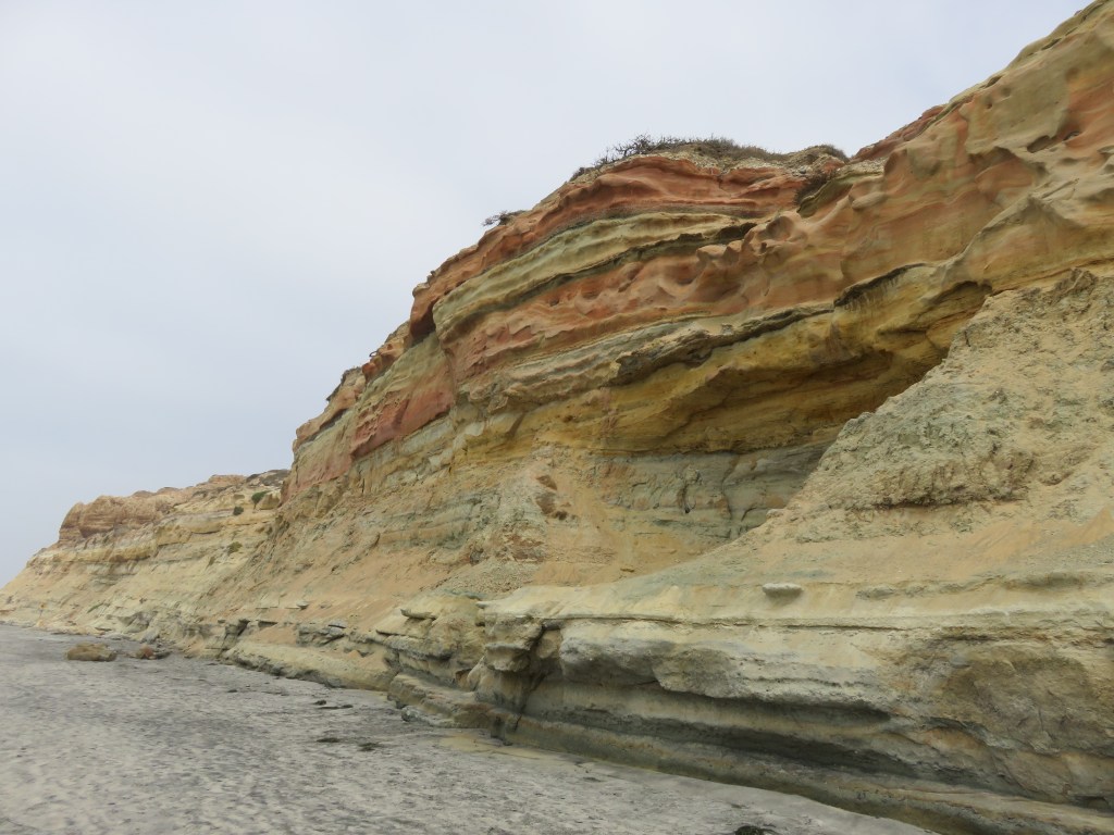 The trails in Torrey Pines are very well laid out and roped off, with interpretation of plants and history along the trails. We hiked Guy Fleming, Parry Grove, and Beach Trails, finishing with a walk along the state beach – it was not the crystal clear, blue water and white/pink/black sand beaches of the Caribbean, but it smelled like the ocean and I enjoyed the experience.