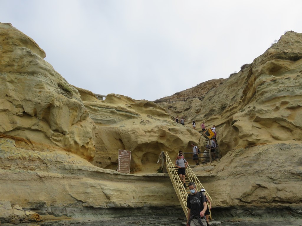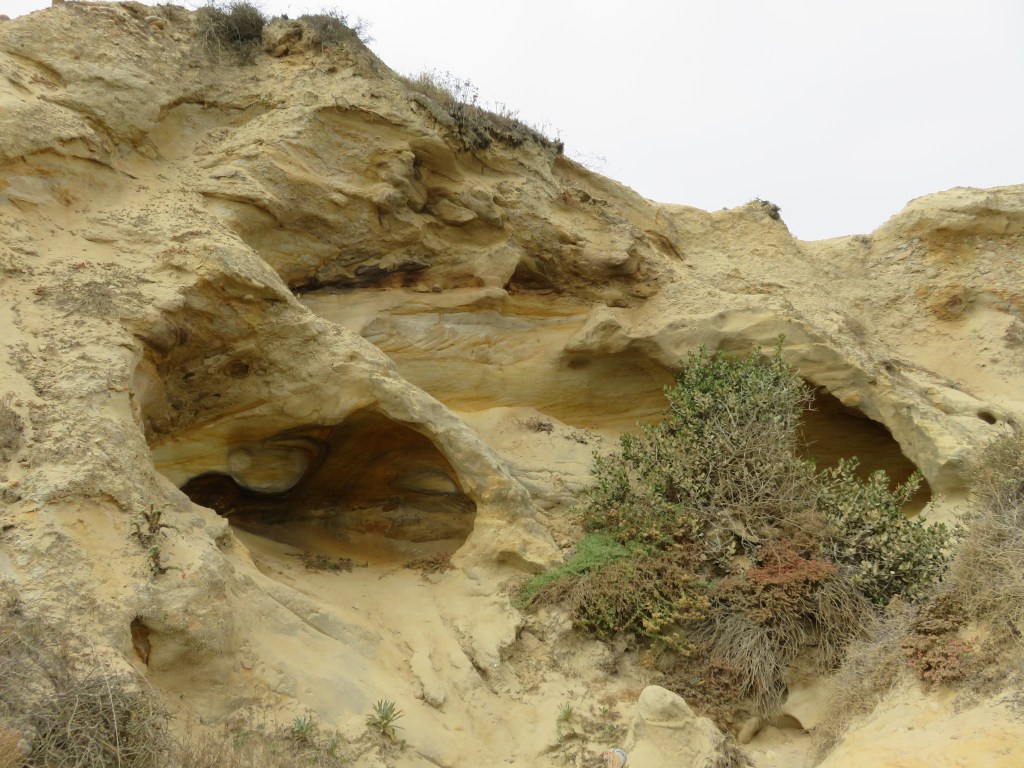 We walked around the Visitor Center, Point Loma Lighthouse (at one point the highest light on the US coastline) and a short trail from the lighthouse with interpretation of the marine environment. Then we hiked two trails: Bayside and Coastal. Both trails have beautiful views, sandstone cliffs, and rock formations, along with good interpretation and signage.