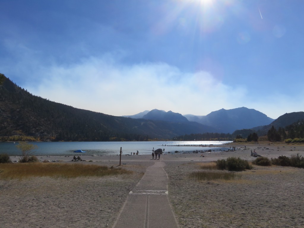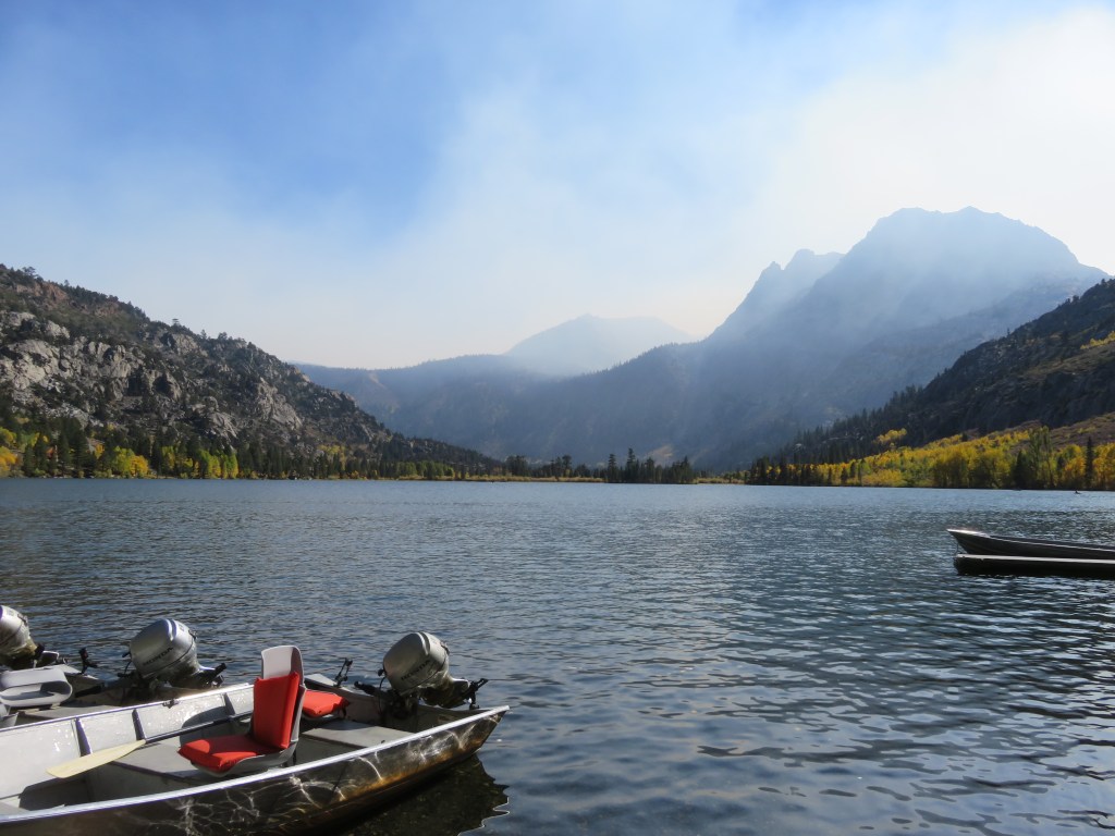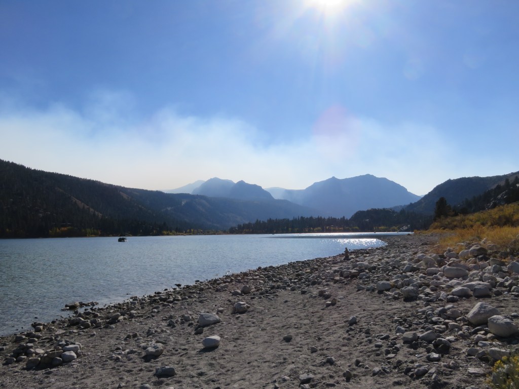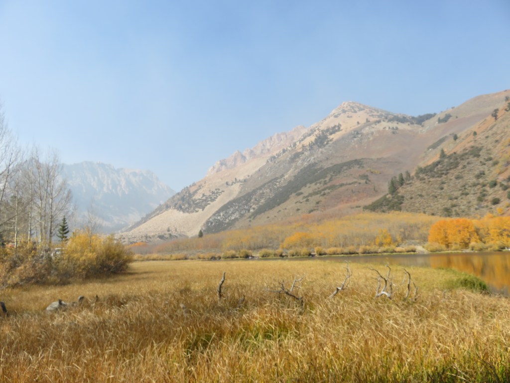 On our first full day, smoke blanketing the Mammoth area pushed us south to Bishop to see the fall colours a day earlier than planned, but what a great day turned out to be! Our stops were North Lake and Lake Sabrina in Bishop Creek Canyon. On the second day, we drove north through the smoke a bit to get to Mono Lake and June Lake Loop.