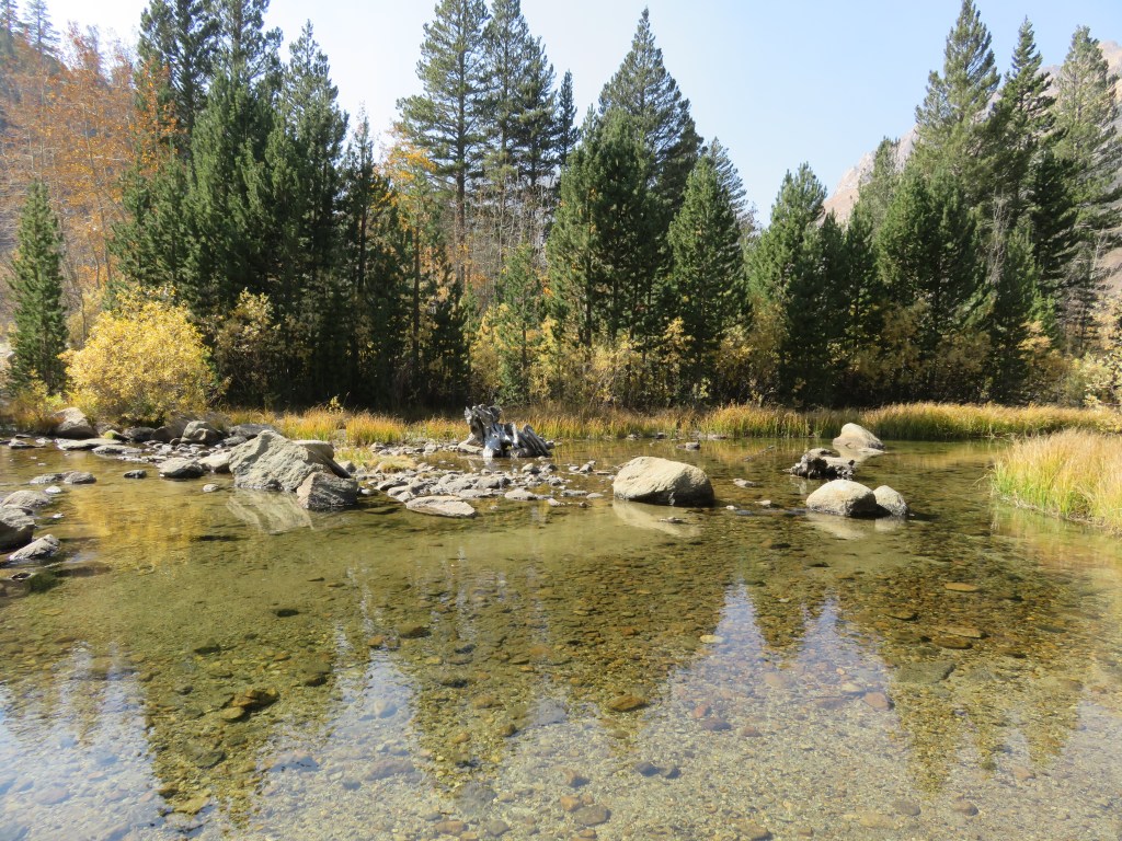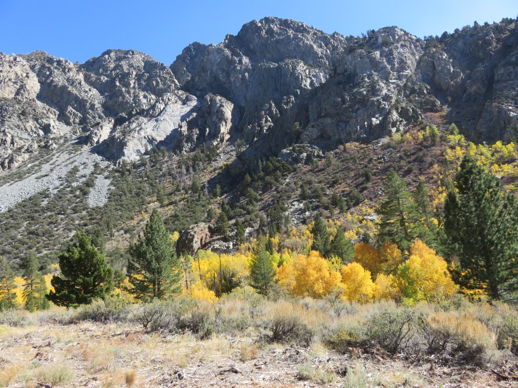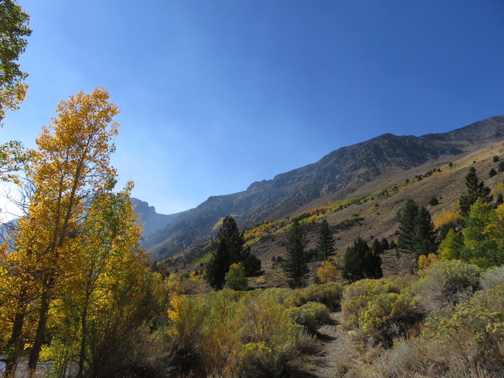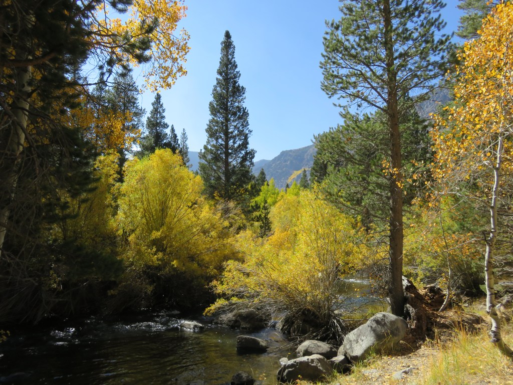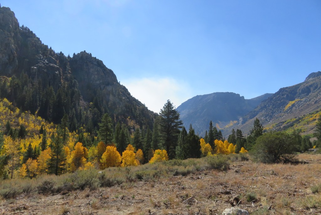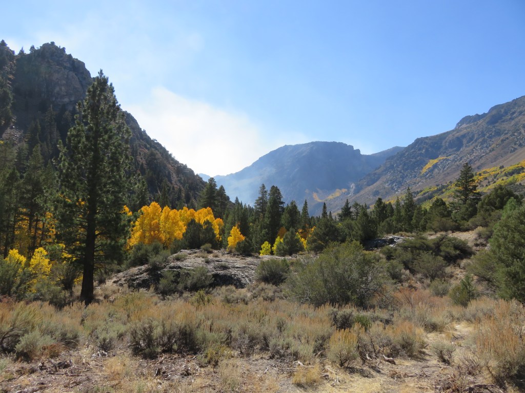 You don’t have to hike 10 miles into the wilderness to be fully immersed in nature. You can even enjoy it immensely with other people around you. Sometimes it comes down to timing or serendipity. Sometimes it’s a massive wildfire. Sometimes it’s a change in wind direction. On the weekend of my first trip to the Eastern Sierras to see the fall colours, it was all of those things, but nature … gotta love it. Neither fire, smoke, nor a fall blocked the beauty or spoiled our fun. So this post is all about okay, mostly about the photos.
