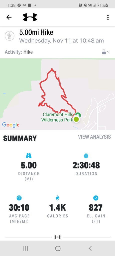Nov 11 – Another 5 miles done while hiking with friends 🥾.