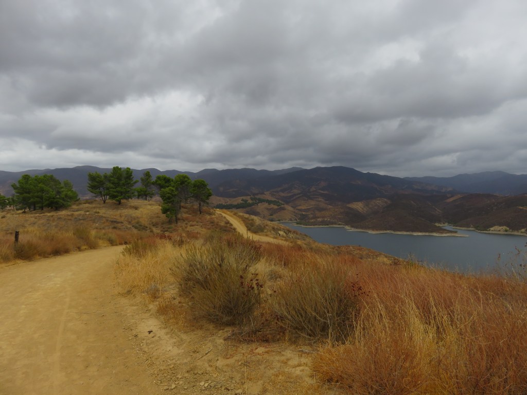 When we did the Castaic walk on the Friday, we decided to return to Castaic on the third day of our trifecta for a real hike. Since cooler weather was forecasted we set our start time for 11 am. That gave me some time to get much needed sleep. It was a good thing I did because the second Castaic hike was in no shape or form the same as the 3 miles we did around the lagoon. The main trails we hiked were West Ridge Trail and Pine Ridge Fire Road. They added up to 5 miles of mostly inclines, with beautiful views of the lake (even on a cloudy day), but still 5 miles of mostly inclines. Needless to say, I rested on the Monday. Not even yoga.