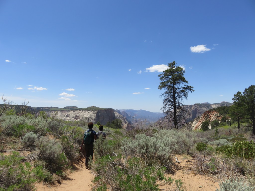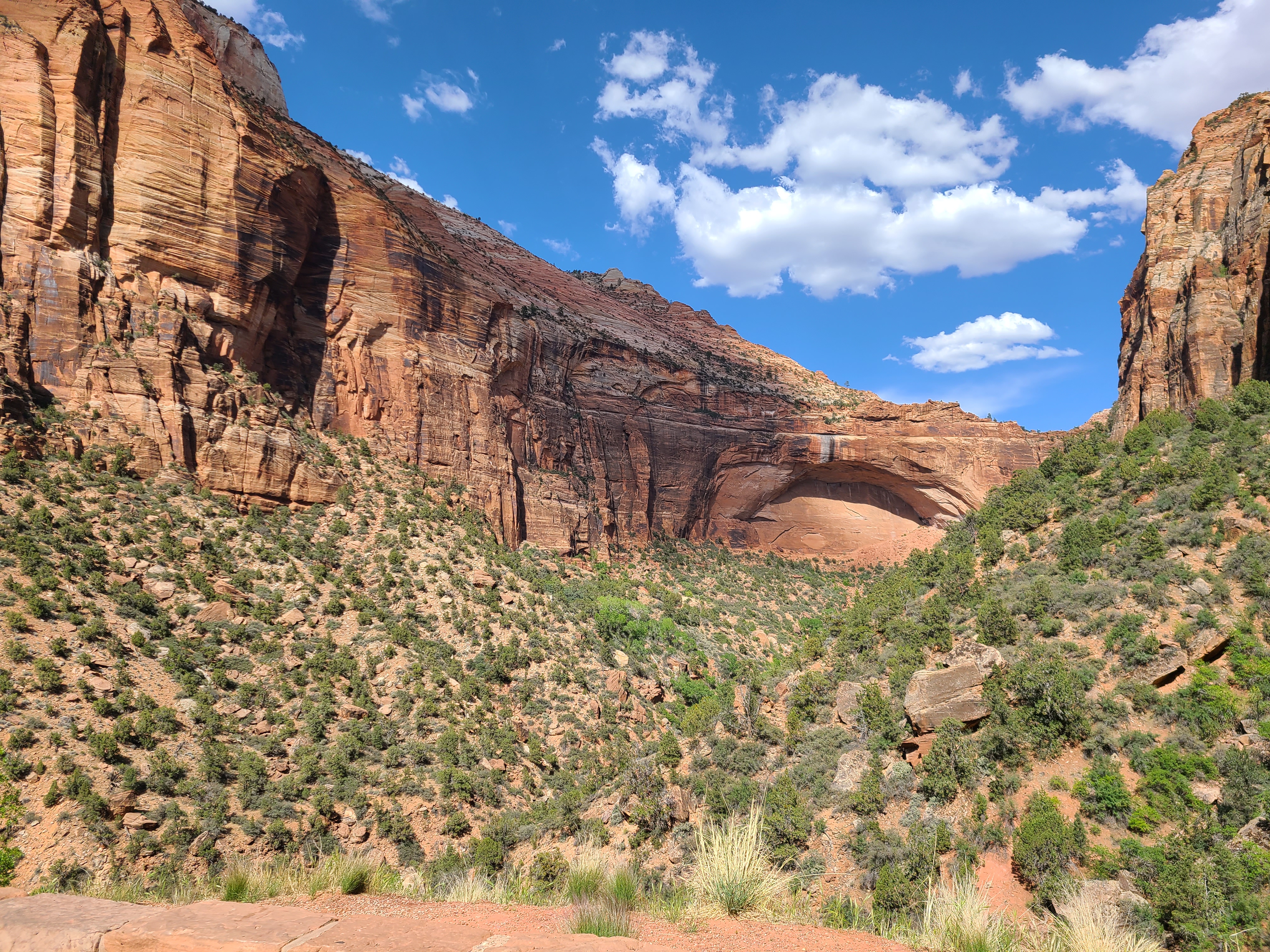 This was our longest hike. Almost 7 miles roundtrip. We learned about it from another visitor who we met at the pool in our complex on our first night. The Observation Point trailhead can be accessed from within the park and from outside through an easement on private property. However, we couldn’t use the trailhead in the park because a huge rock fall in 2019 (a 31,000 ton piece of Navajo sandstone broke and fell from 3,000 ft) is still blocking access and that area is closed indefinitely.