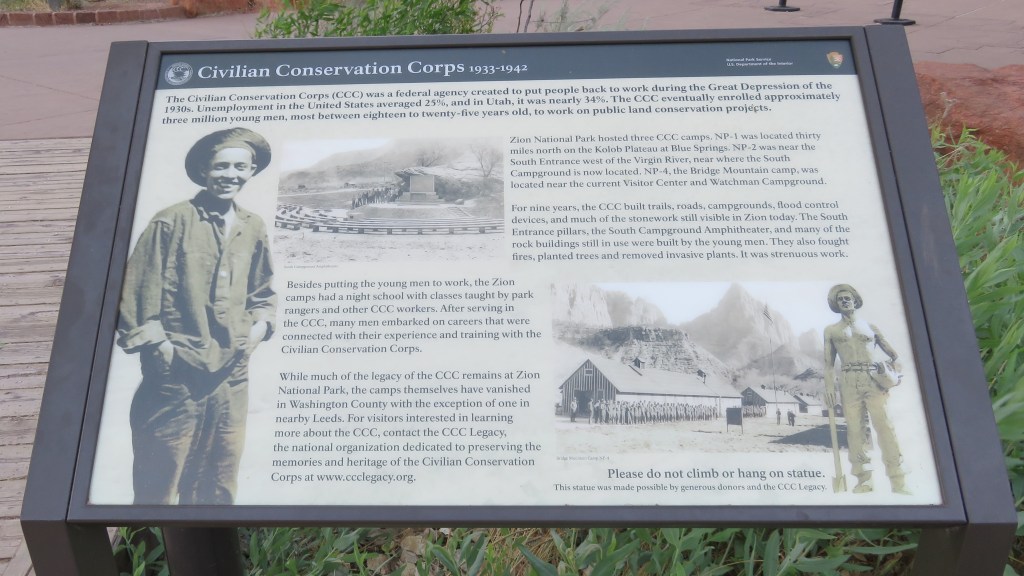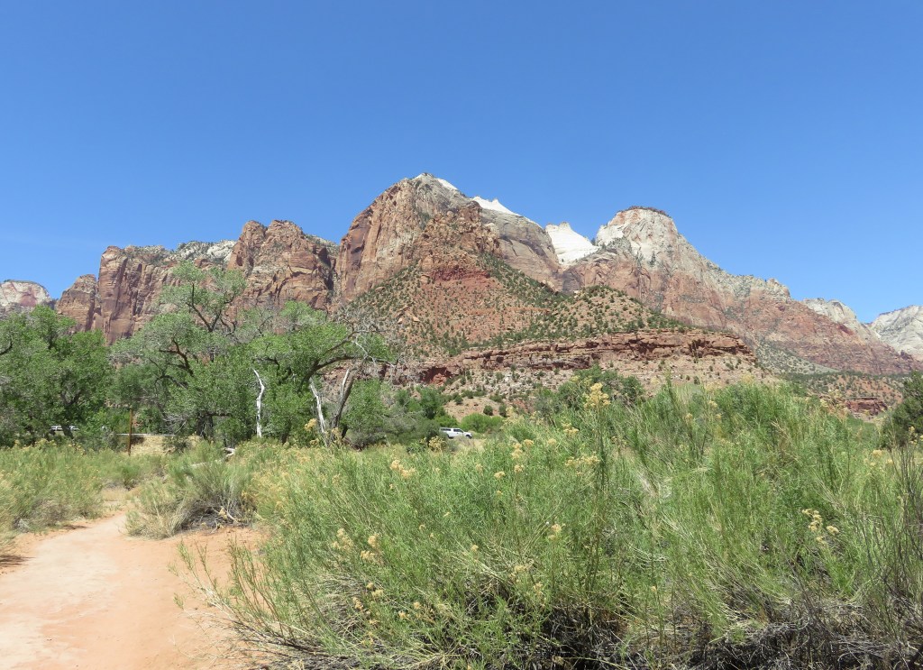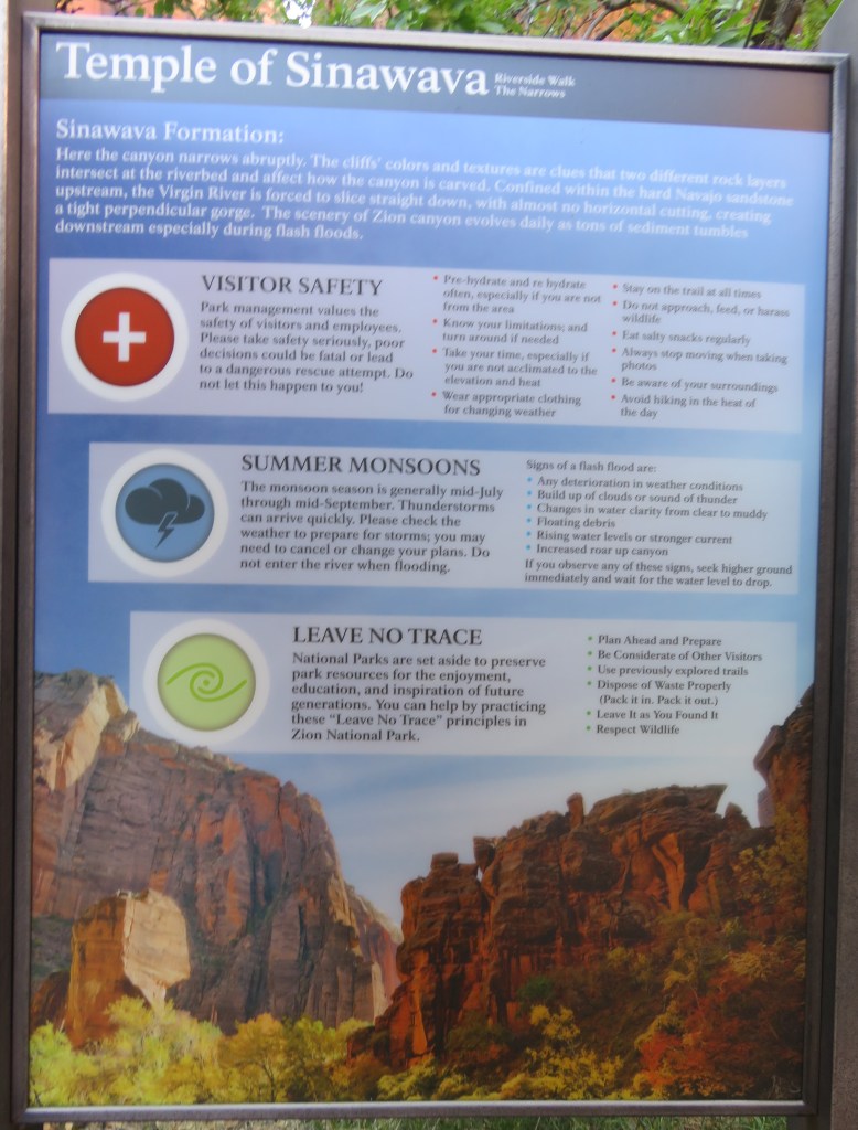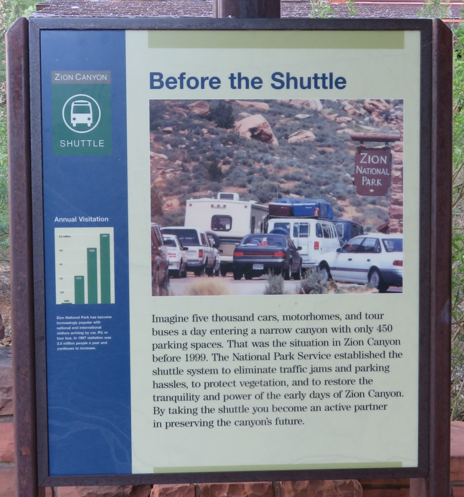 Some 3,591,254 visited Zion in 2020 and while that number is lower than previous years, it is still significant. With that level of visitation Zion ranked 13th of all NPS units and 3rd of all national parks. Visitation is forecast to increase in 2021 and I’ll be included in the count. My first trip to Zion (is it more difficult to pronounce the Paiute word ‘Mukuntuweap’ than it is to pronounce Pennsylvania, Roosevelt, or Afghanistan?) National Park. Two days of hiking. Five trails (see map above). Excellent interpretation around the visitor center. An engaging park ranger whose ‘Ranger Talk’ on the patio focused on the human history of Zion: from the earliest known dwellers to those who operate and use it today. A shuttle service within Zion Canyon that’s been in place for over 20 years, not only reducing congestion on the main scenic road in Zion Canyon, but reducing GHG emissions within the park. Ride said shuttle along Zion Canyon Scenic Drive from the Visitor Center to the Temple of Sinawava. Sustainable building. Splendid landscapes and great conversation.