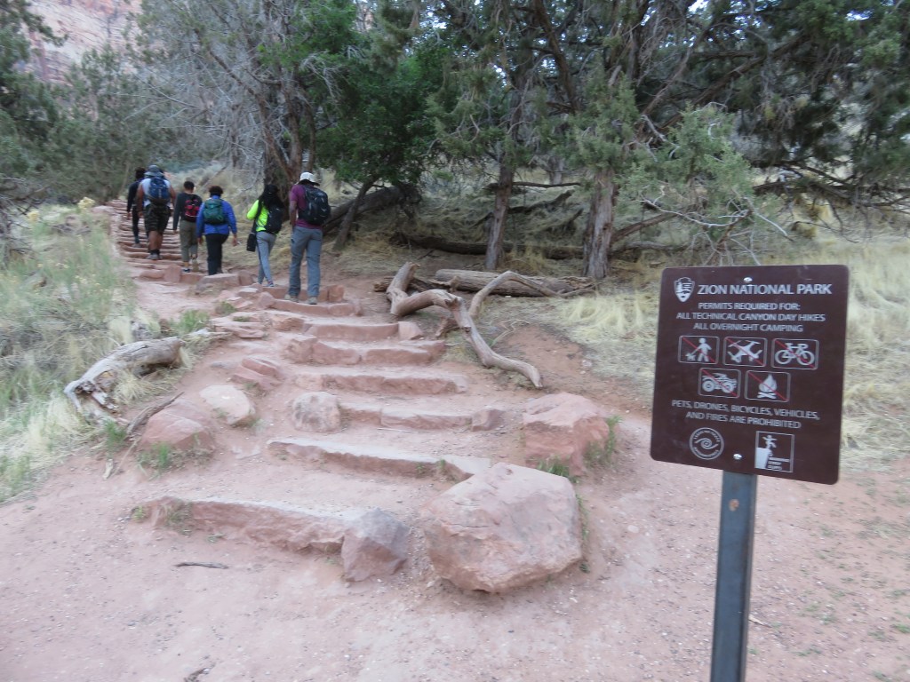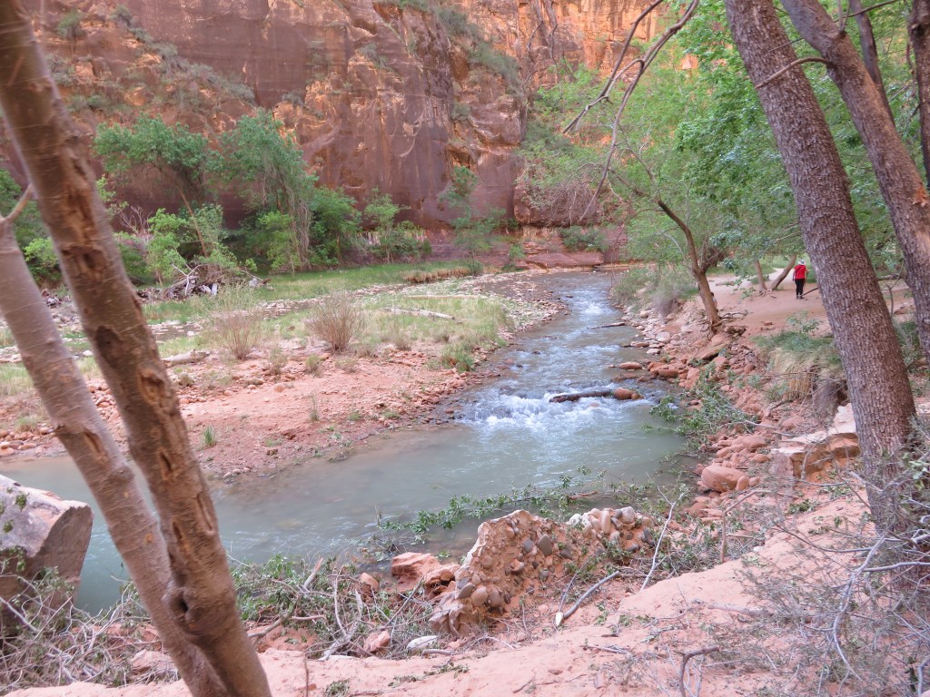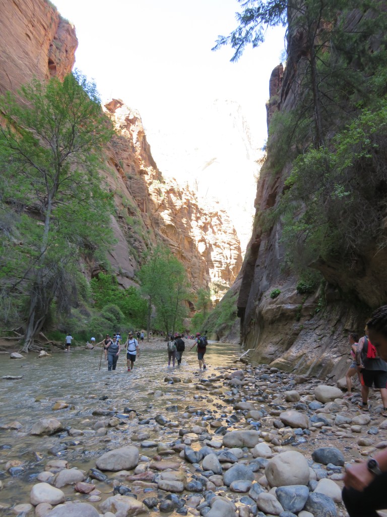 This trail leads to the start of The Narrows, a section of the Virgin River. Some of us hiked part of The Narrows, some of us (including me) chose to forego the challenge. Hiking The Narrows is a reason to return to Zion.