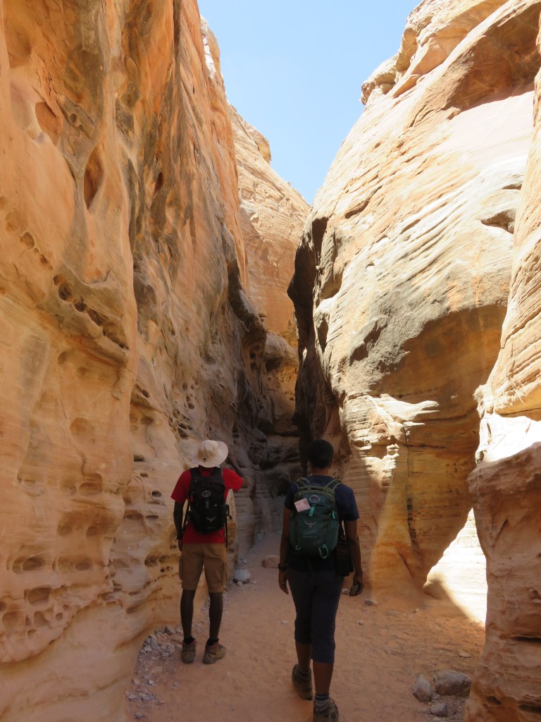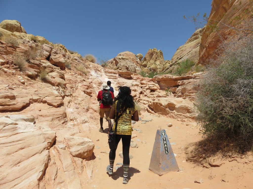 No experience is perfect (though this weekend was close to perfection). There is always a jackass or ten who will try to ruin it. Cases in point. The guy who walked up to JT and asked her if the Cadillac outside the restaurant was hers. The comment about whether my group got a group rate – in future my response will be “yes, we got the Black rate”. I really regret not coming up with that response on the spot. The woman walking in slippers (rubber flip flops, not hiking sandals) on the White Domes Trail who felt the need to tell experienced and properly equipped hikers (we changed to boots for this trail) how to follow a simple, clearly marked trail (if I were the violent sort my response would’ve been a throat punch. Unfortunately walking away without ‘picking my teet’ had to suffice. I did not feel satisfied). The ‘friendly’ driver at Whiskey Pete’s Stateline Stop on the Nevada- California border who felt the need to share with Wonder Woman that traffic was backed up “all the way to Barstow” but he wasn’t “suggesting” she wait there instead of sitting in traffic. He was just sharing information. There’s no need to mention what trait these people have in common. There were more micro-aggressions than these, but I won’t waste more time listing them.