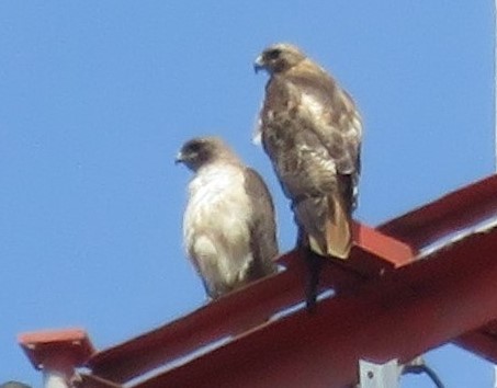We saw our first two birds (Northern Mockingbird, Mourning Dove) in the parking lot before we started walking. We saw the last two (Red-tailed Hawks) in the parking lot when we finished the walk 😊. The birds we saw/heard include: