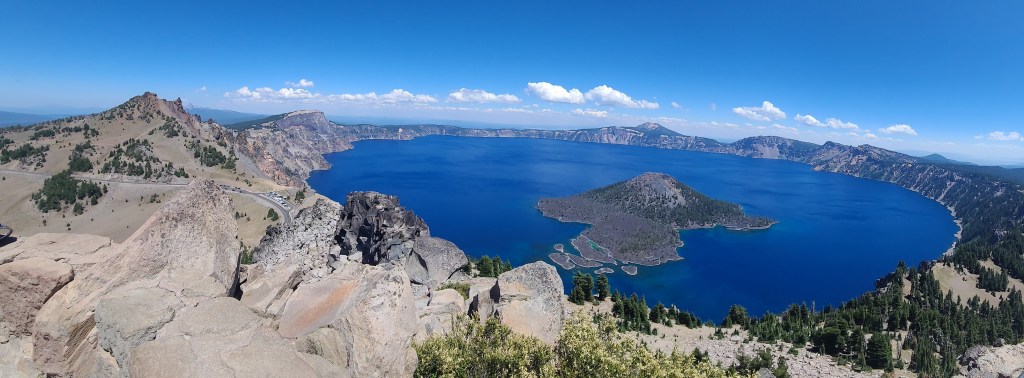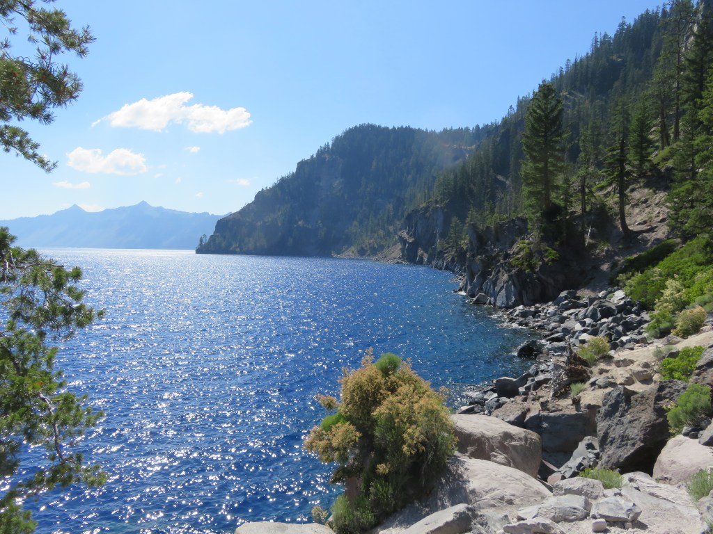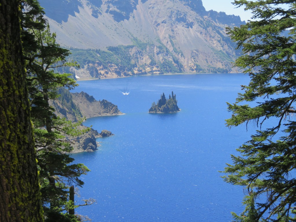 At 1,943 feet deep, Crater Lake in southern Oregon, is the deepest lake in the US and only 8 other lakes world wide are deeper. It is also one of the “most pristine on earth” (NPS). The lake formed in a caldera (a volcanic basin) that was created when Mount Mazama collapsed after an eruption. Its formation took place over 7,700 years ago. Sites featured are: Watchman Overlook Trail, Cleetwood Cove Trail, Vidae Falls, Plaikni Falls, and Phantom Ship.