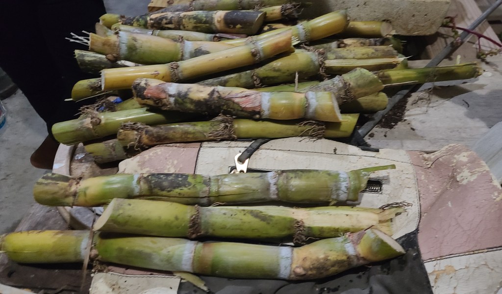 Sucking cane grown in my aunt’s yard. Peeling said cane with knife and teeth. All the while reminiscing about doing the same in the cane fields when we were children, as the adults cut and loaded cane.