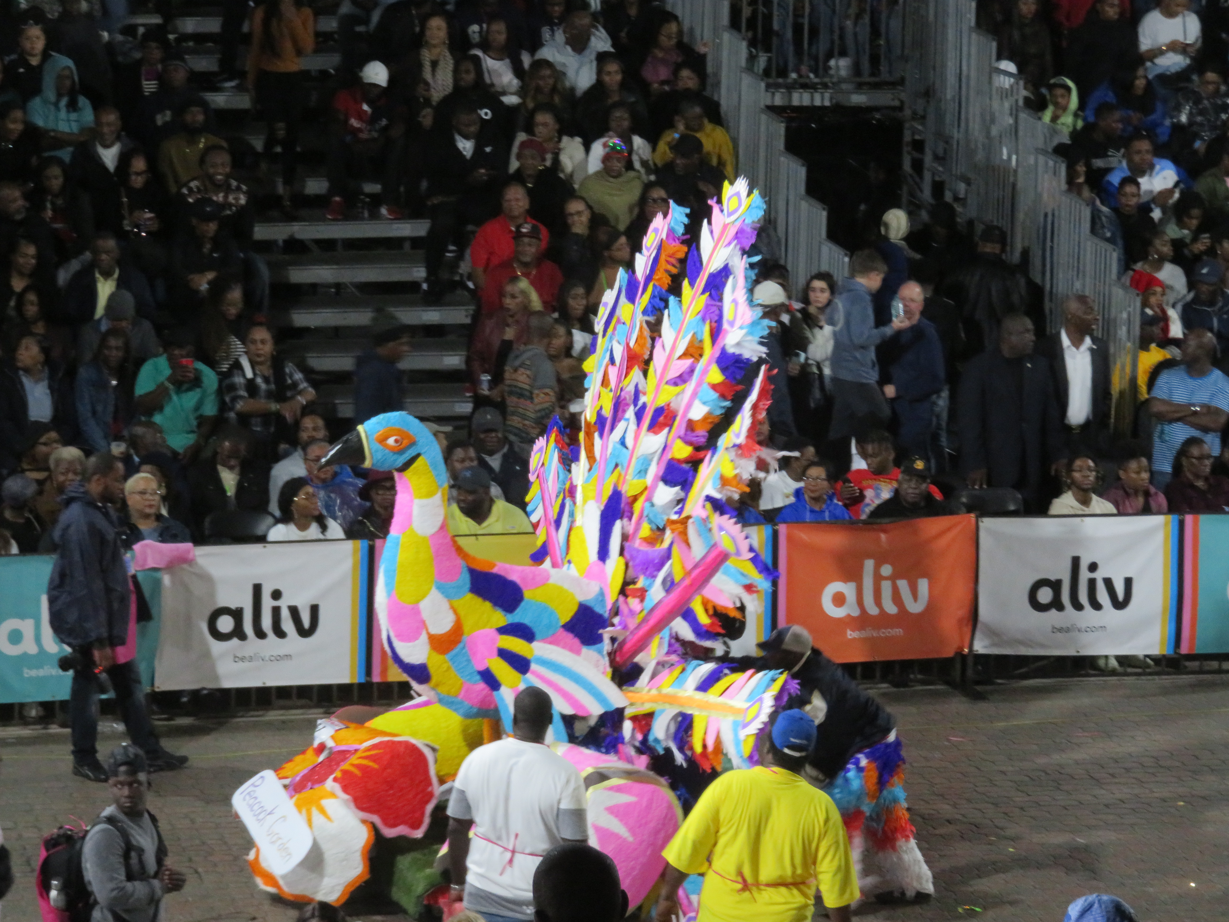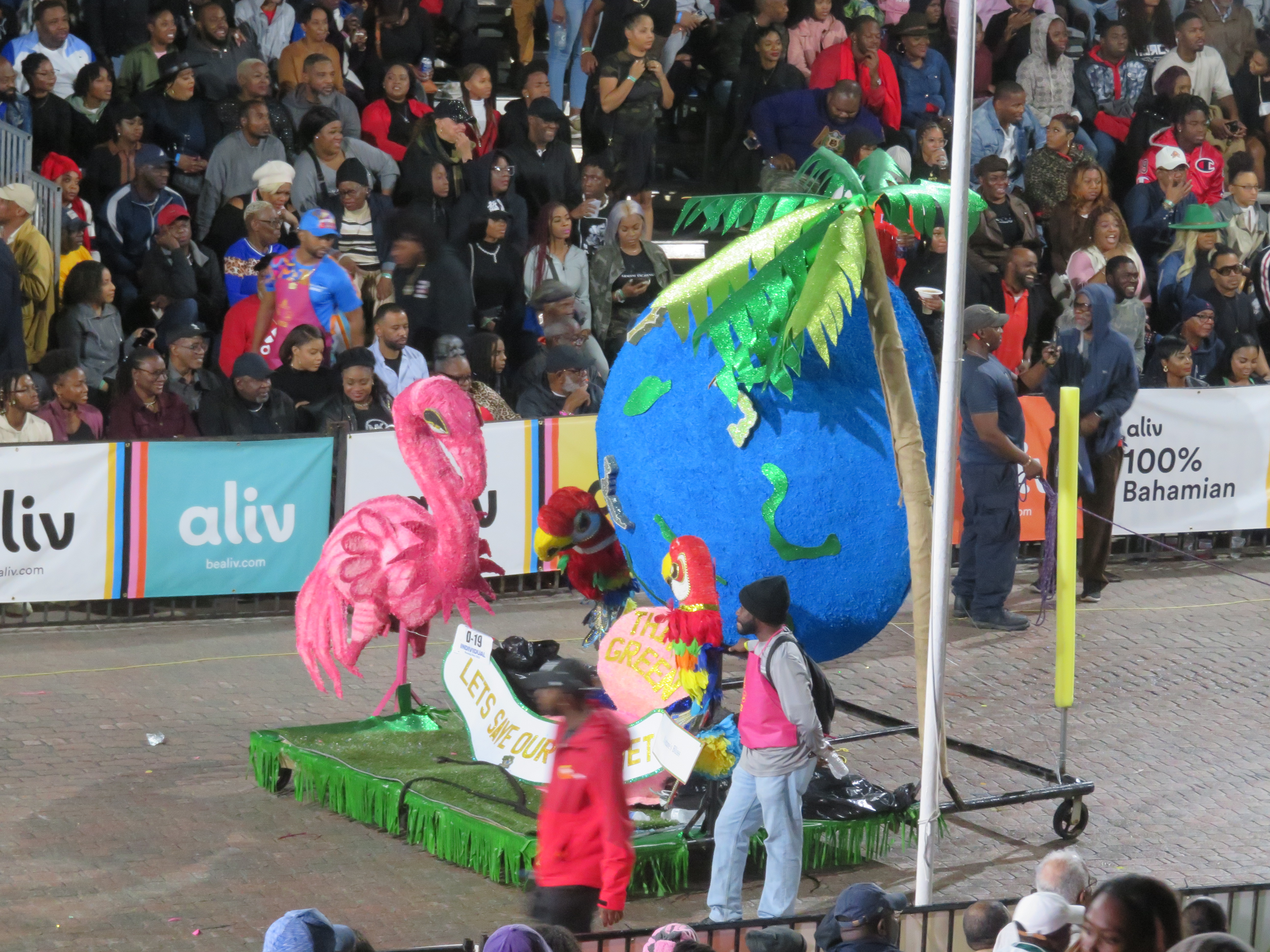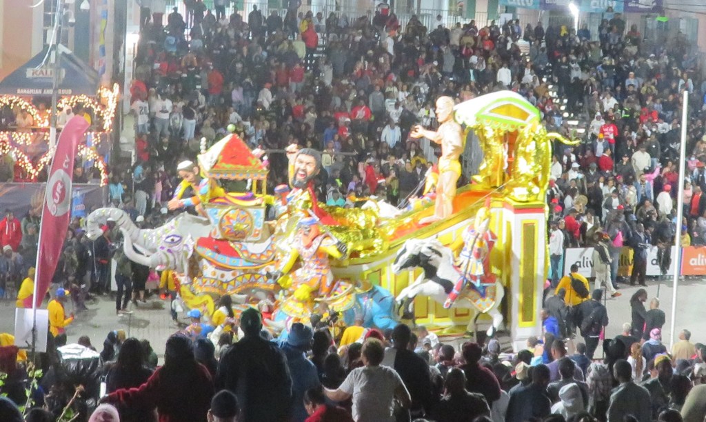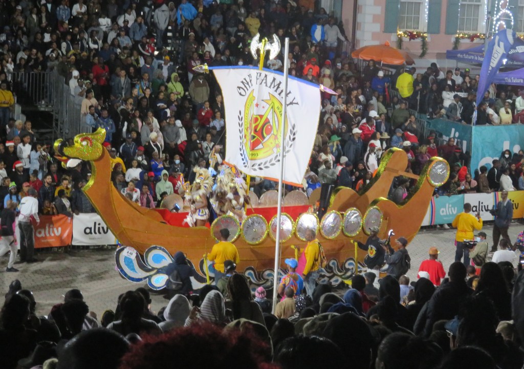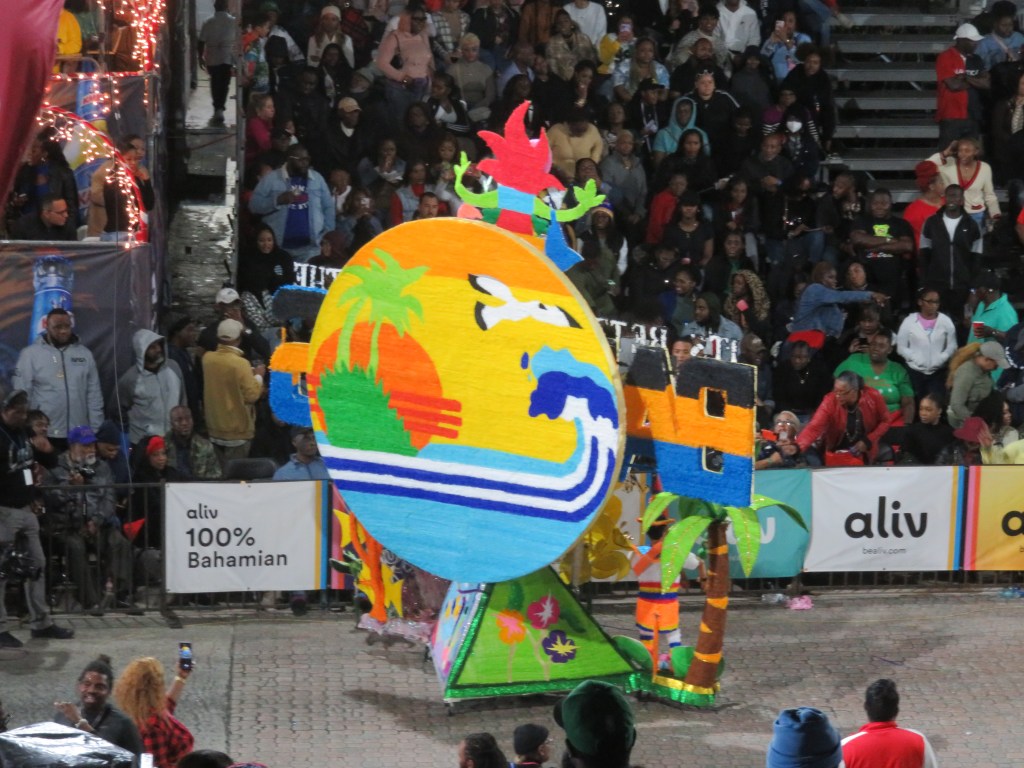 Another downside to Junkanoo that I’ve experienced is the sometimes lengthy period between the groups rushing. It’s understandable given the size of some of the floats, but still. Of course there are DJs and other entertainment during these sessions. I like the deejaying, the other entertainment (like hoop competitions), not so much. During one of the interludes I heard some old and new Bahamian music. The following tune is one of my favourites from the old ones.
