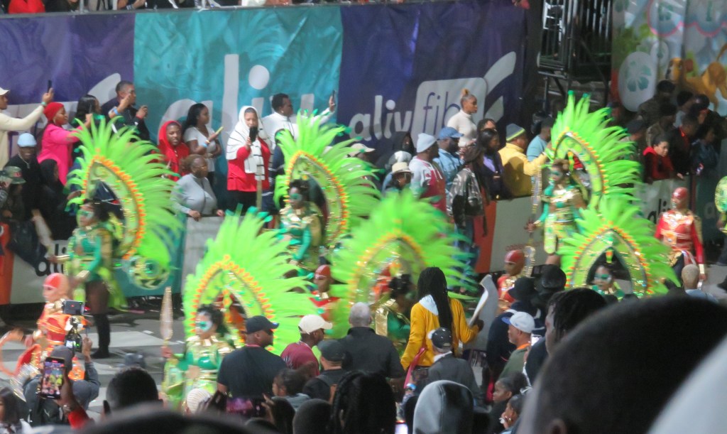 I love that revelers “rush” in full costume for 2-3 circuits of Bay Street and its environs that constitute the parade route, so though the event starts at midnight, it lasts well beyond sunrise on the day. I’ve been to Junkanoo three times. This last time, the Boxing Day iteration was postponed from 12 am to 6 pm on that day because of the heavy rain forecast (it rained nonetheless). I arrived around 6:30 pm and the first group got to my location just after 7 pm. I left after 3 am the next day and that was just the end of the first circuit. Hopefully you get the picture.