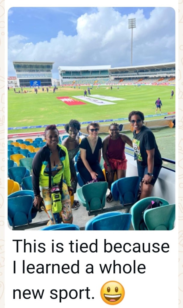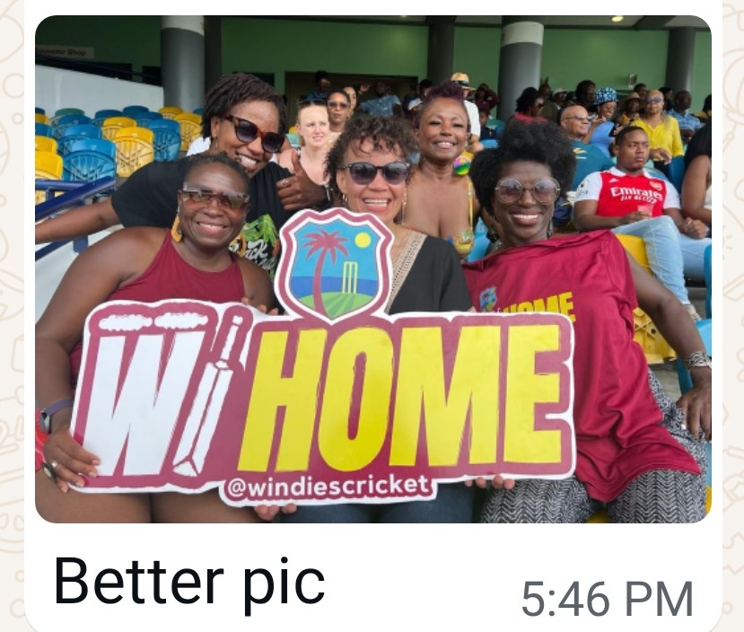 Cricket! Lovely Cricket! My friend Jennetta is a baseball fanatic (the abbreviated version is insufficiently emphatic). In my humble opinion, baseball is like watching white paint dry. Can you even tell it’s happening? We’ve gone to a few baseball games together (woe is me) and I’ve listened (trying hard not to) while we’re driving places together, and inevitably I comment, audibly, under my breath, and/or mentally (sometimes all three together), that cricket is so much better. After that comment once too often, I was challenged to include cricket for our Bim extravaganza. What’s a West Indian woman to do? Go big or go home (unless you’re already home). West Indies vs India One Day International (ODI), at the one and only Kensington Oval, if you please. And we won! Phew! I really enjoyed explaining the game and not only calling our win, but the number of overs in which it would happen. My friends enjoyed those elements too; but also being on the big screen, getting photos with the roving on-air personality, and getting a West Indies t-shirt (which we are meant to be sharing, but I still have. Oops!). I don’t know what they enjoyed more – the match or the value added.