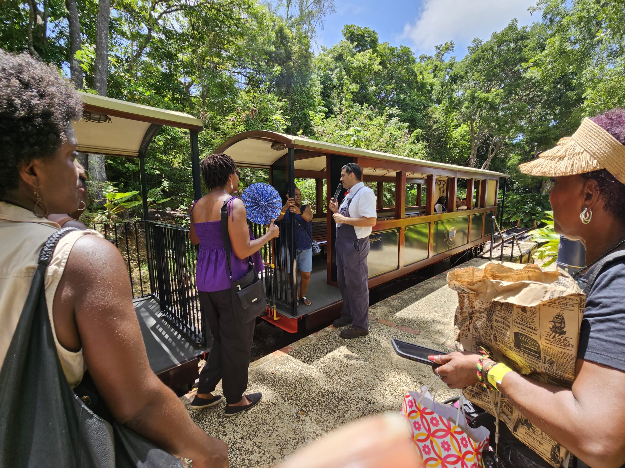 Did someone say trains, sugar, and rum? No? I thought I heard a train whistle. Well anyway, we rode on an actual train during our visit to St. Nicholas Abbey & Heritage Railway. Some of us even helped the engineer to turn the train around, while others yanked the chain to blow the train whistle. Some of us simply enjoyed the ride and took photos. I meant for the experiences on this day to tell some of the Story of Sugar & Rum (as titled on the Bespoke itinerary), and to an extent it did. I planned to start or cap off the story with a tour and tasting at Mount Gay Distillery, Mount Gay being the oldest rum in the world. Unfortunately we missed out on that experience since Mount Gay was closed on our available day because of a national holiday. Needless to say, I was extremely disappointed. Fortunately, our St. Nicholas Abbey experience was great and it included a stop at Cherry Tree Hill! Plus, this attraction is still locally owned and operated (see previous comments or posts about the multiplier effect). Plus, plus, Harry, Ras, and Heaths joined the group for this tour ☺️.